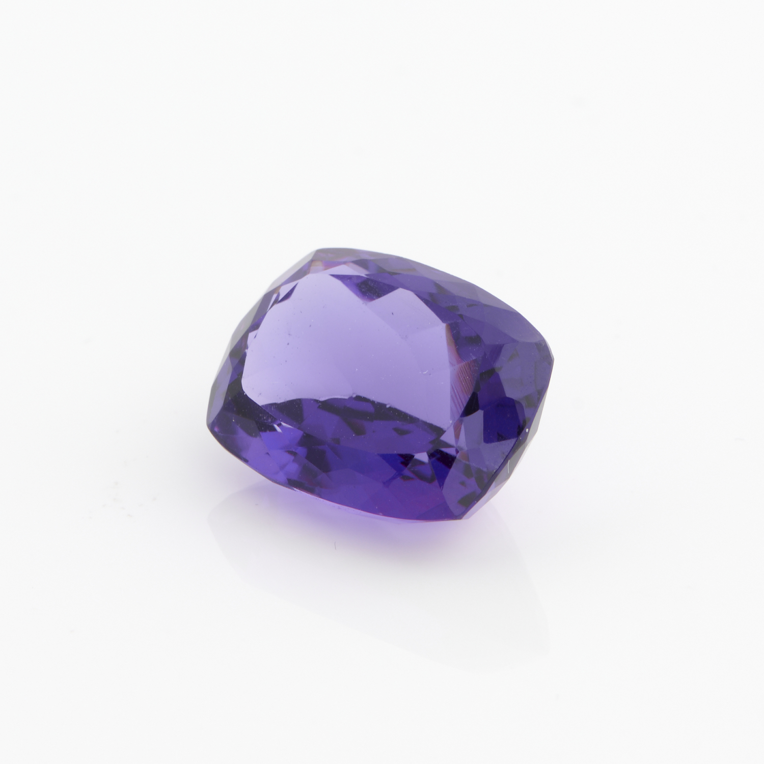 A LOOSE CUSHION CUT AMYTHEST MEASURING APPROXIMATELY 18 X 14MM