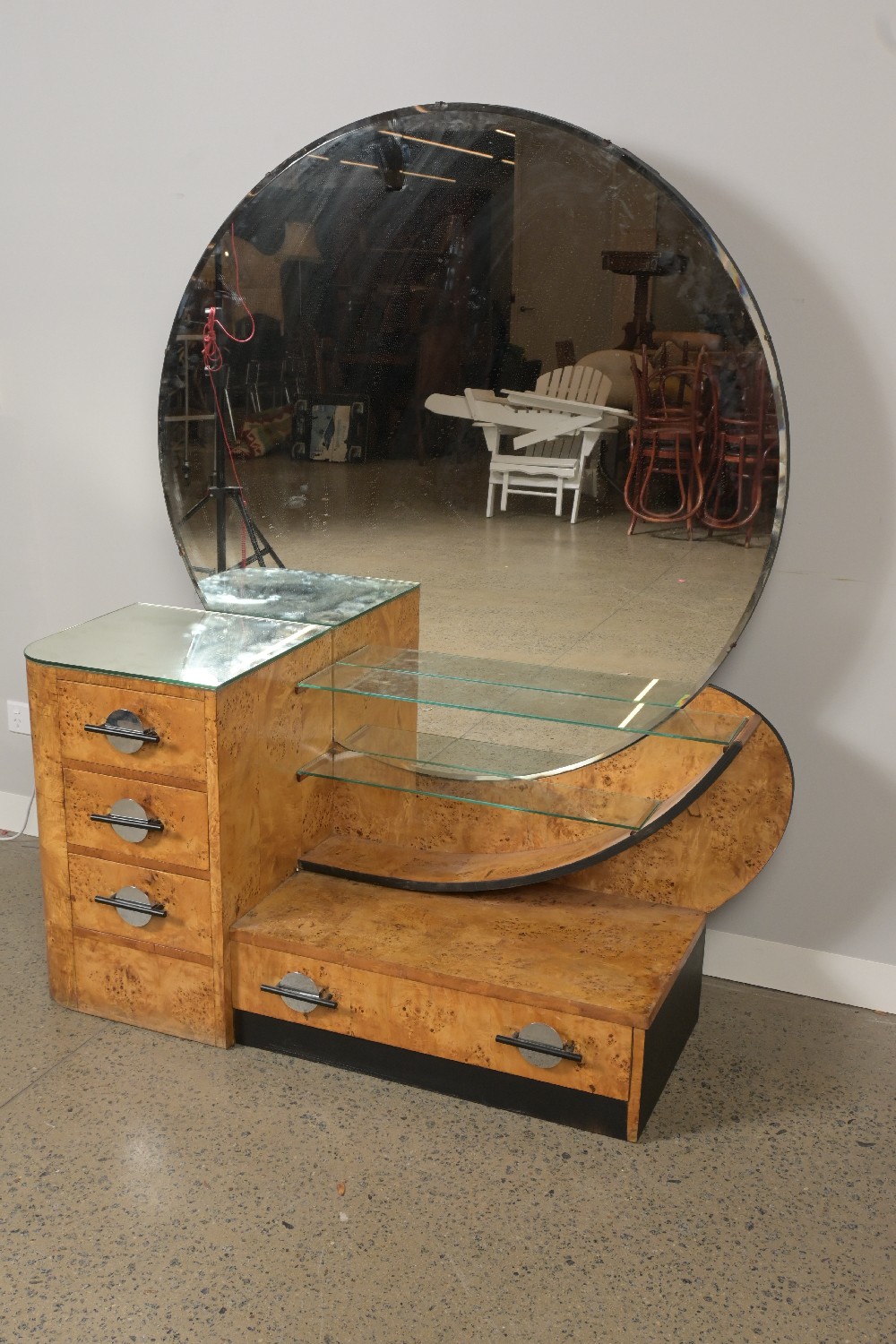 AN ART DECO BIRDSEYE MAPLE VENEERED DRESSING TABLE (163H X 132W X 56D CM) (PLEASE NOTE THIS HEAVY ITEM MUST BE REMOVED BY CARRIERS AT THE CUSTOMER'S EXPENSE. LEONARD JOEL STAFF CANNOT ASSIST CARRYING THIS ITEM) (X-LARGE)