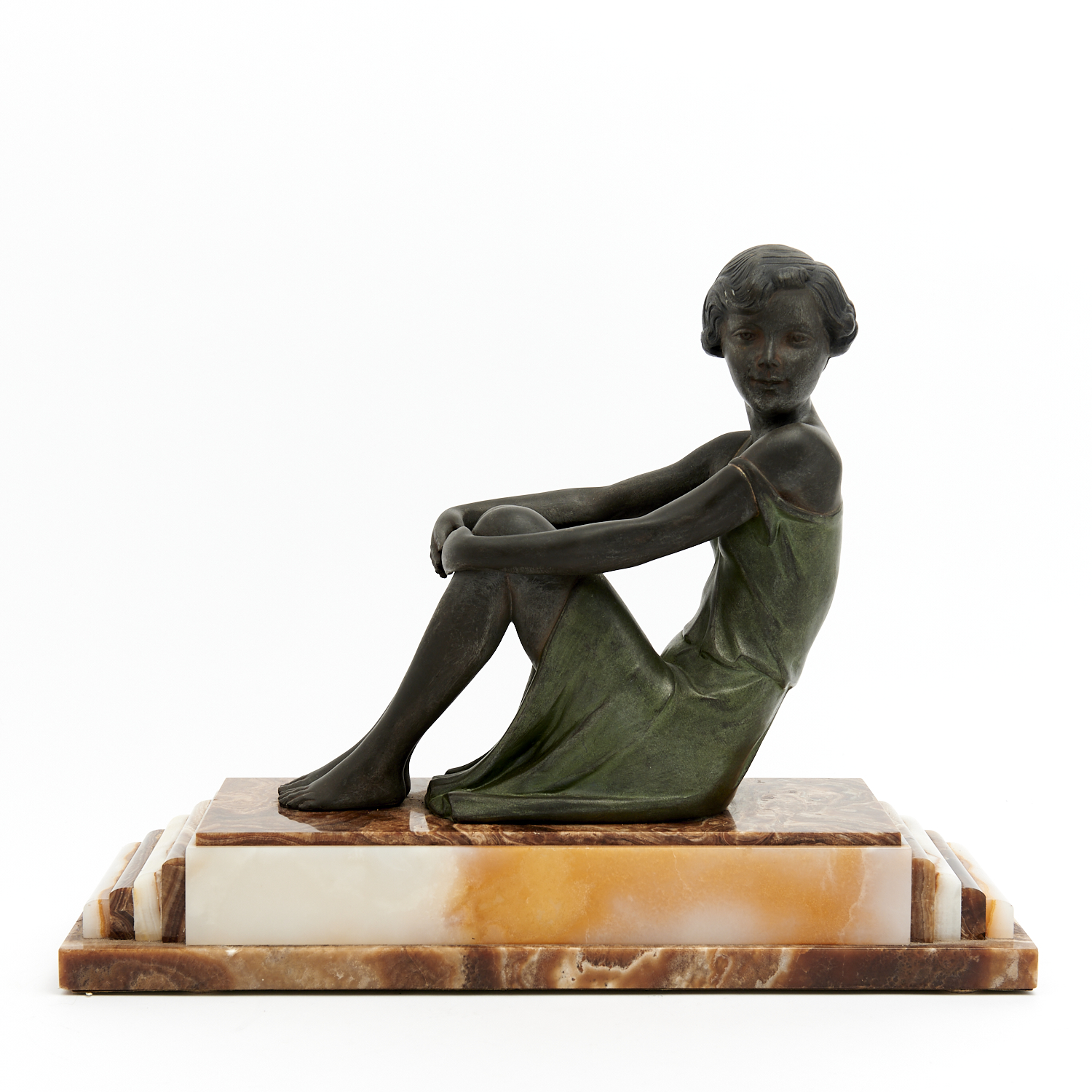 AN ART DECO STYLE SPELTER WOMAN ON AGATE BASE AFTER SEGA L.45.5CM, LEONARD JOEL DELIVERY SIZE: LARGE