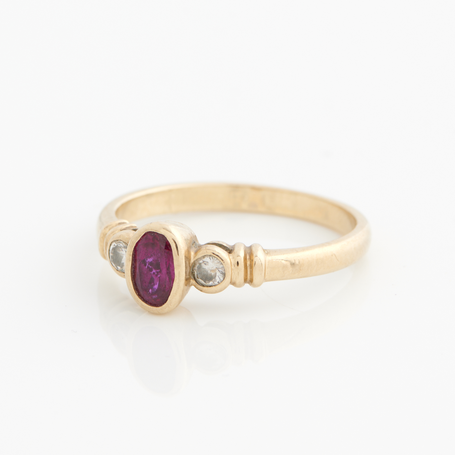 A RUBY AND DIAMOND RING IN 9CT GOLD, SIZE N, 2.4GMS