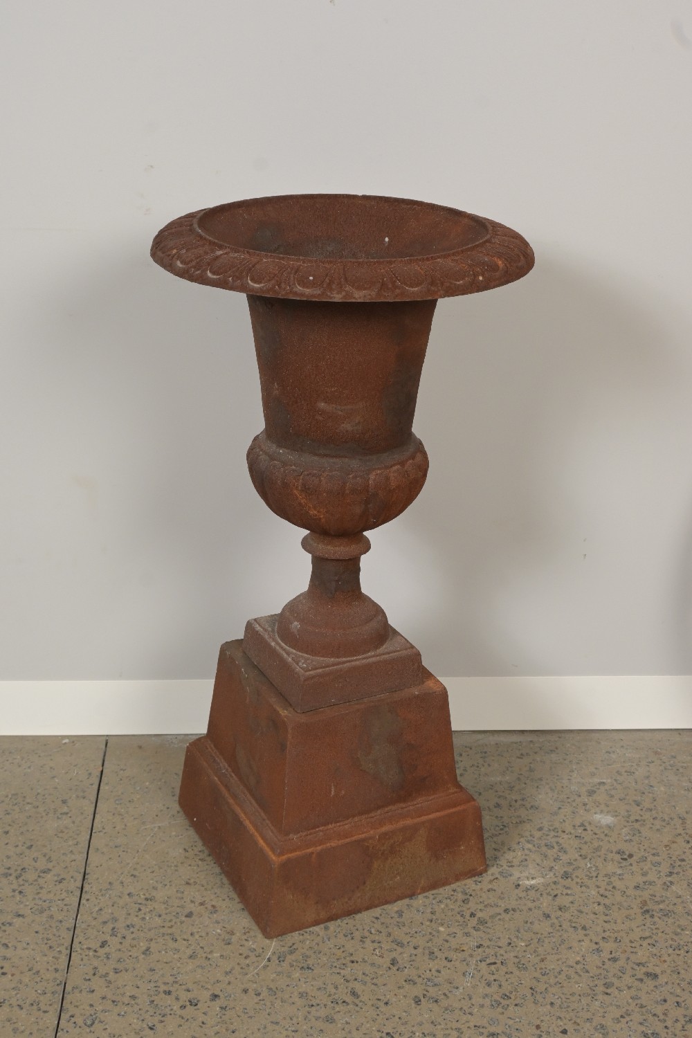 A CAST IRON GARDEN URN 92H X 49DIA CM) (LEONARD JOEL DELIVERY: X-LARGE)