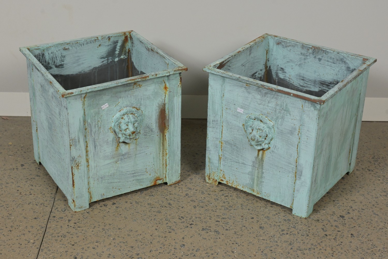 A PAIR OF METAL PLANTER BOXES (42H X 41W X 41D CM) (LEONARD JOEL DELIVERY: LARGE)