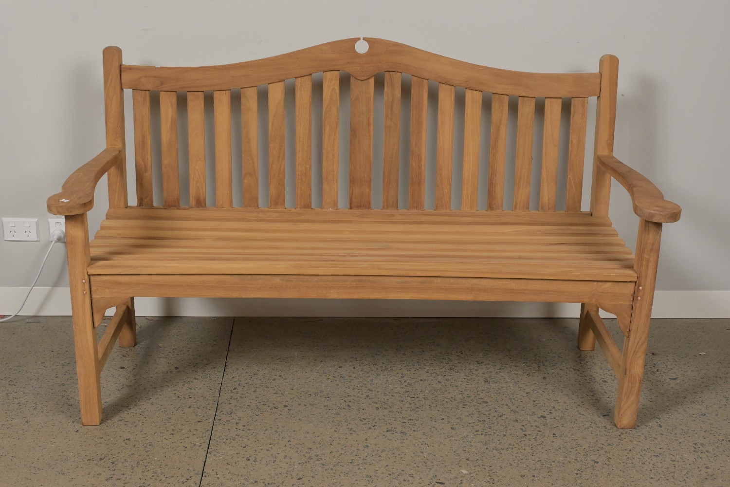 A TEAK GARDEN BENCH SEAT (96H X 158W X 66D CM) (LEONARD JOEL DELIVERY: X-LARGE)