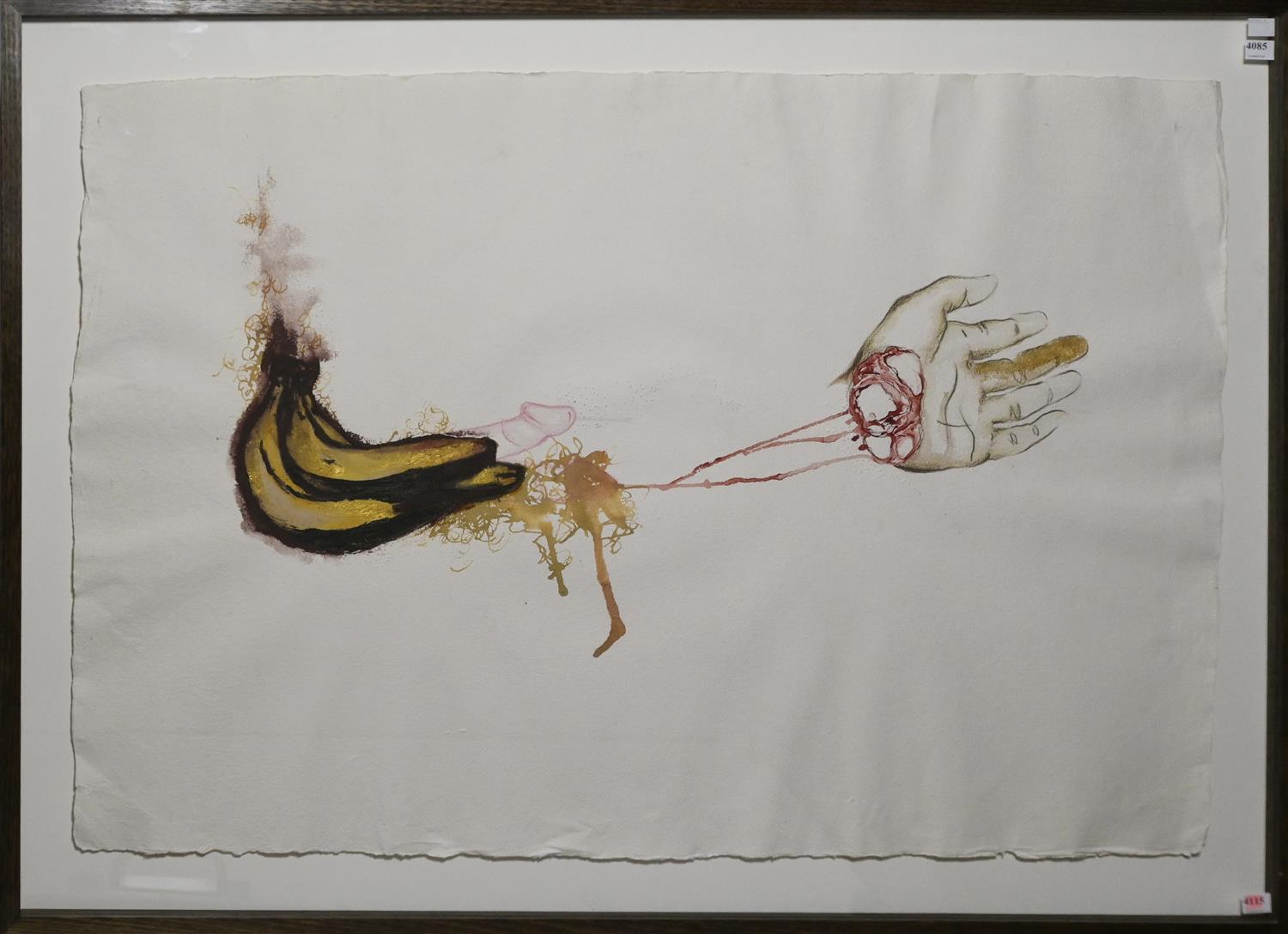 MITHU SEN, UNTITLED (BANANA), MIXED MEDIA ON PAPER, UNSIGNED, 70 X 101CM (SHEET), FRAME SIZE: 84 X 115CM