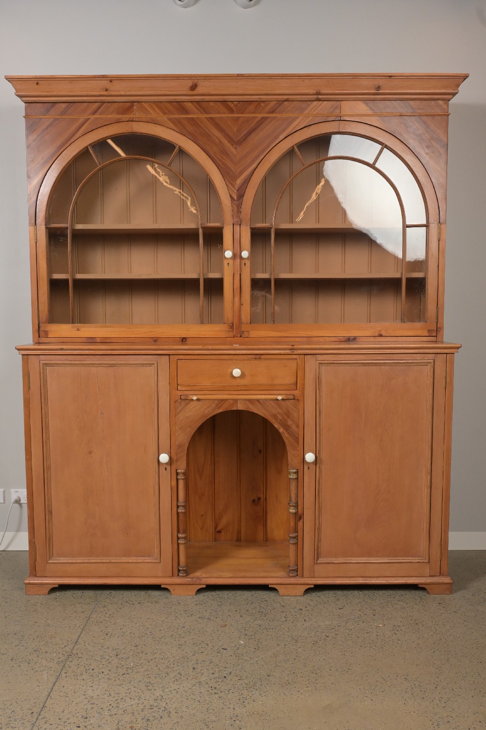 AN AUSTRALIAN COLONIAL KITCHEN DRESSER (A/F) (234H X 205W X 49D) (PLEASE NOTE THIS HEAVY ITEM MUST BE REMOVED BY CARRIERS AT THE CUSTOMER'S EXPENSE. LEONARD JOEL STAFF CANNOT ASSIST CARRYING THIS ITEM) (X-LARGE)