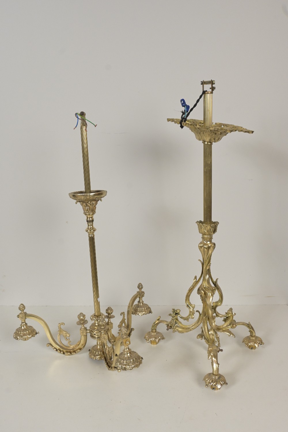 TWO FRENCH BAROQUE STYLE SOLID BRASS CHANDELIERS (A/F) 86H X 43D (LARGEST) (LEONARD JOEL DELIVERY: LARGE)