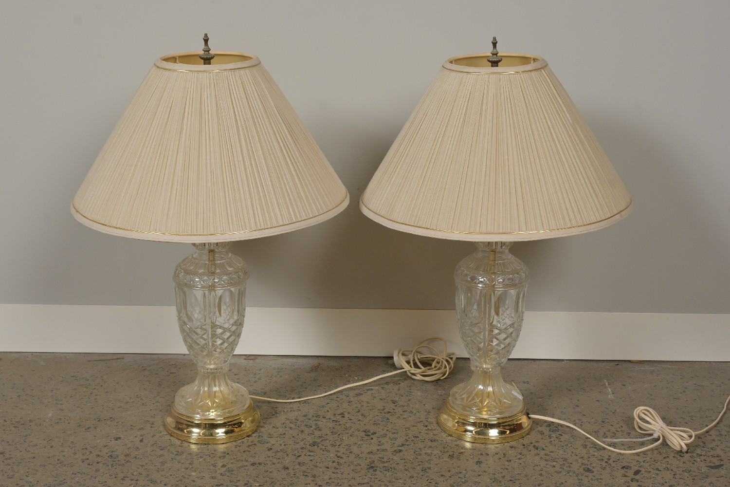 A PAIR OF CUT GLASS TABLE LAMPS (68H X 45DIA CM) (LEONARD JOEL DELIVERY: LARGE)