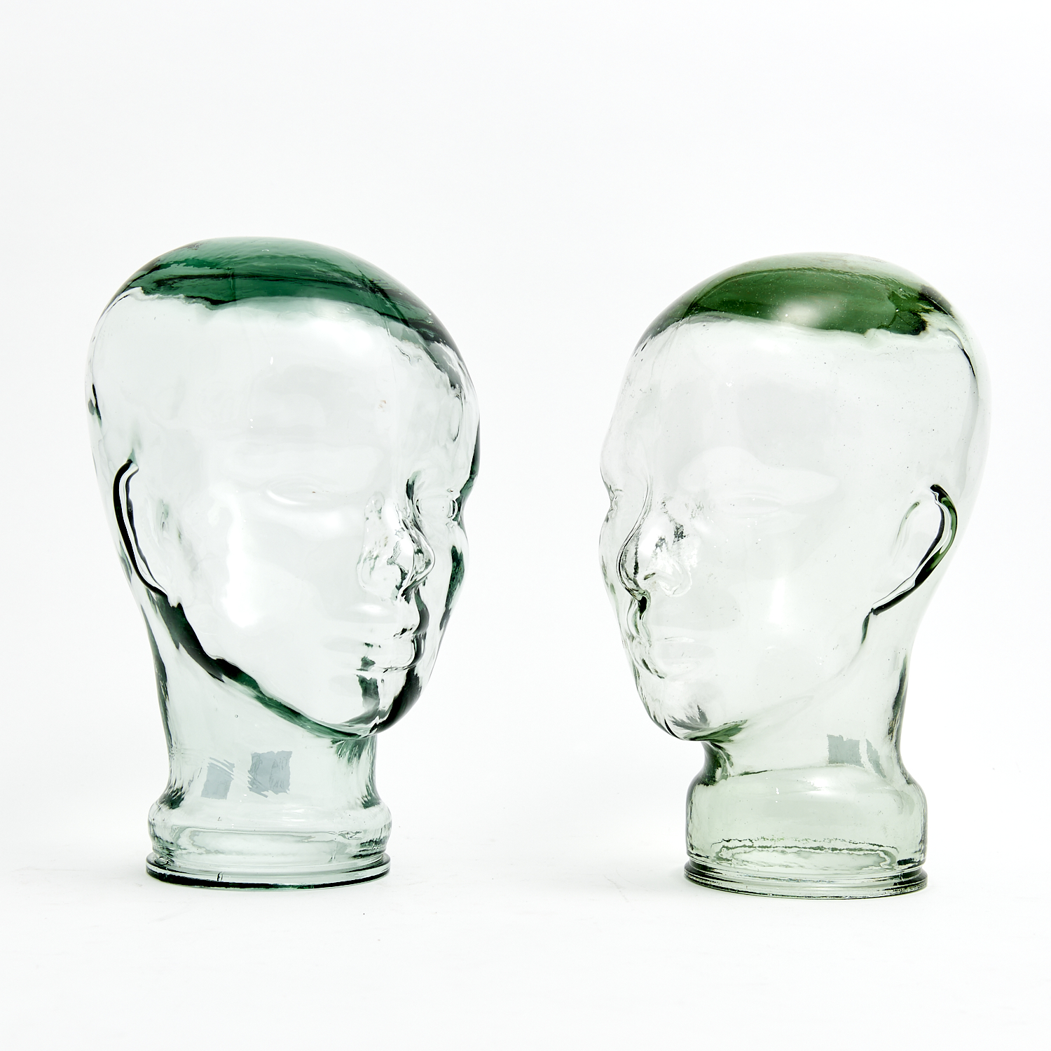 A PAIR OF VINTAGE ITALIAN MADE GLASS HEAD DISPLAY MOULDS H.29CM, LEONARD JOEL DELIVERY SIZE: MEDIUM