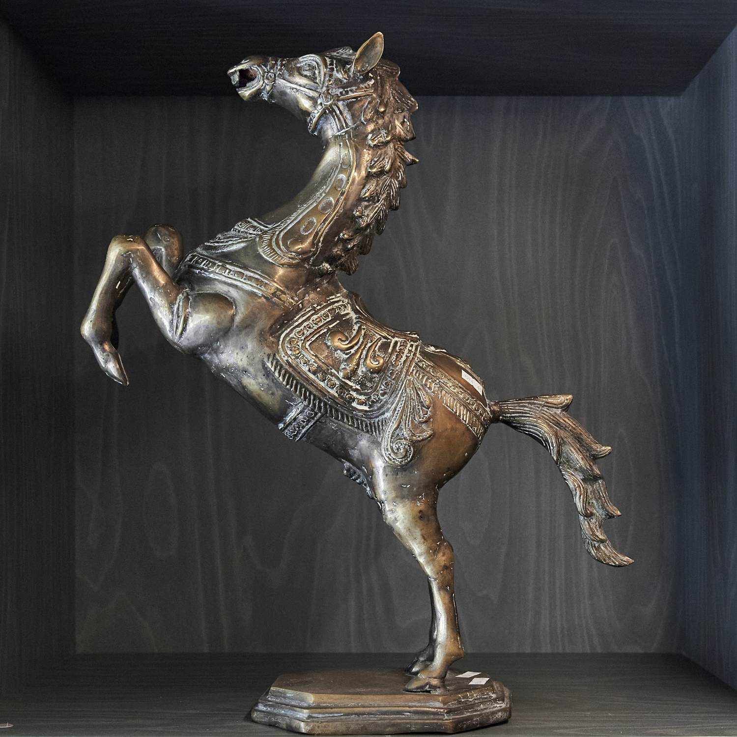 A LATE 19TH CENTURY ORIENTAL BRONZE REARING HORSE FIGURE H.50.5CM, LEONARD JOEL DELIVERY SIZE: LARGE