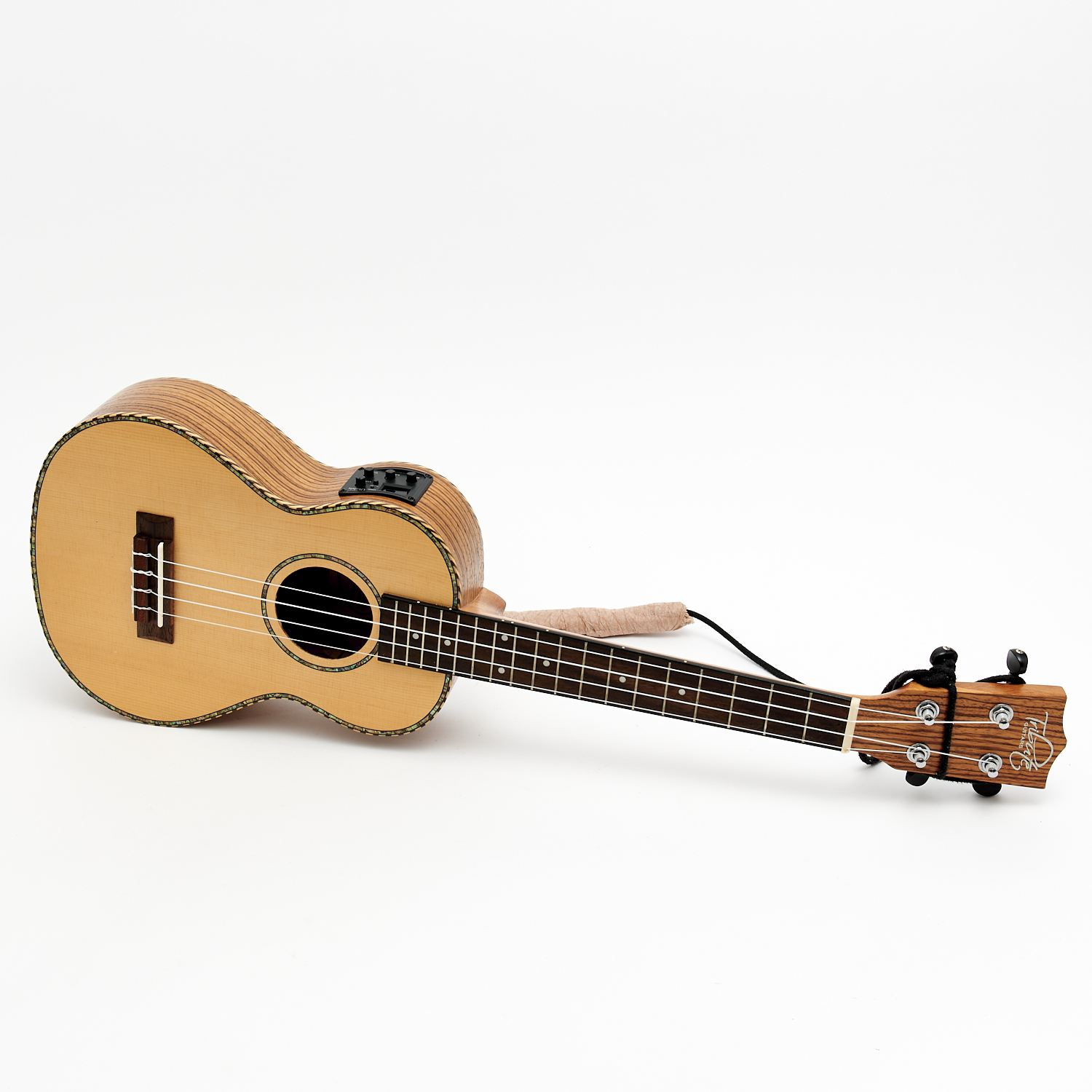 A MOTHER-OF-PEARL INLAID TRIBUTE UKULELE IN ORIGINAL CARRY CASE L.65CM, LEONARD JOEL DELIVERY SIZE: LARGE