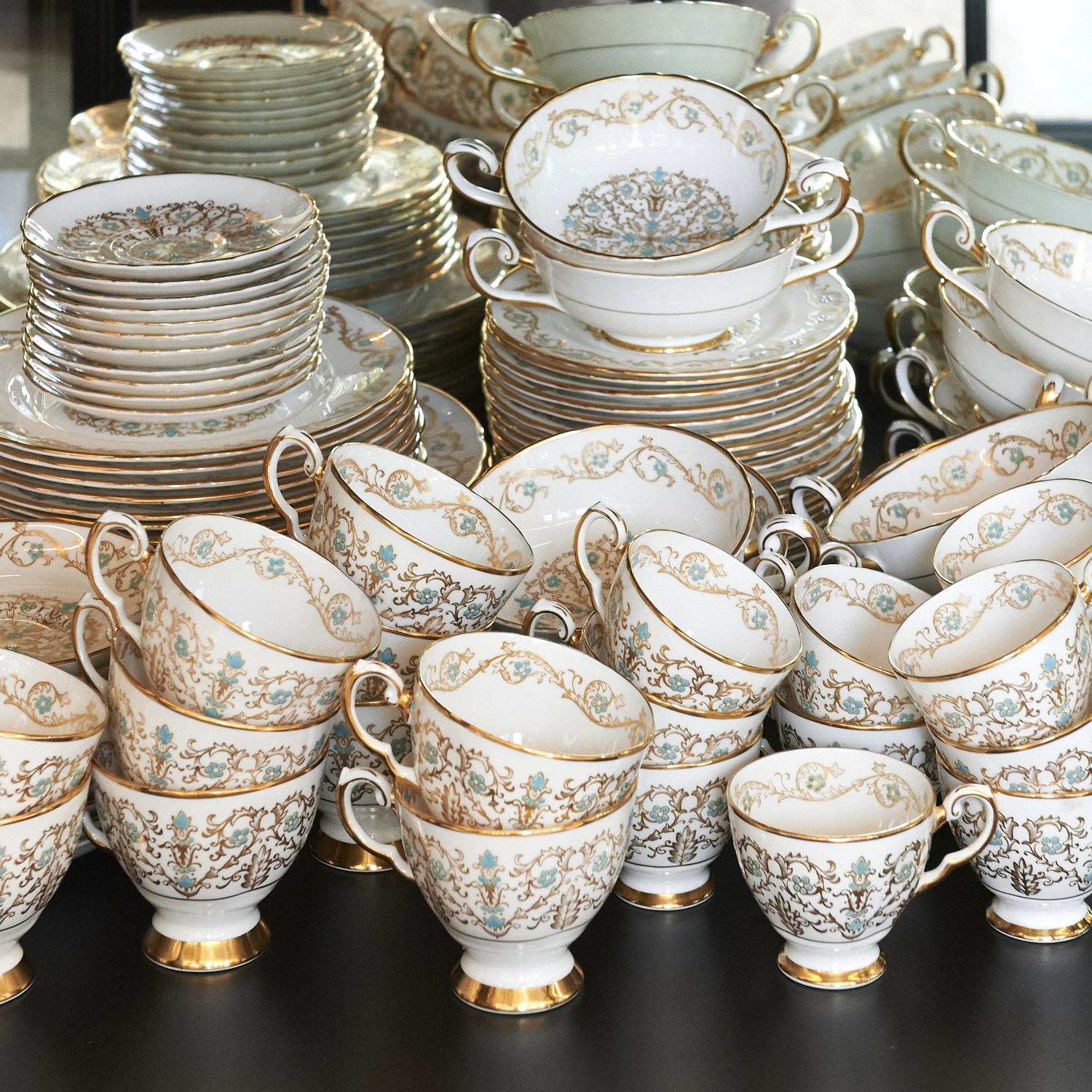 A SET FOR TWELVE TUSCAN LOUISE GILDED AND ENAMELLED DINNER SET DIA.27CM (LARGEST PLATE), LEONARD JOEL DELIVERY SIZE: X-LARGE