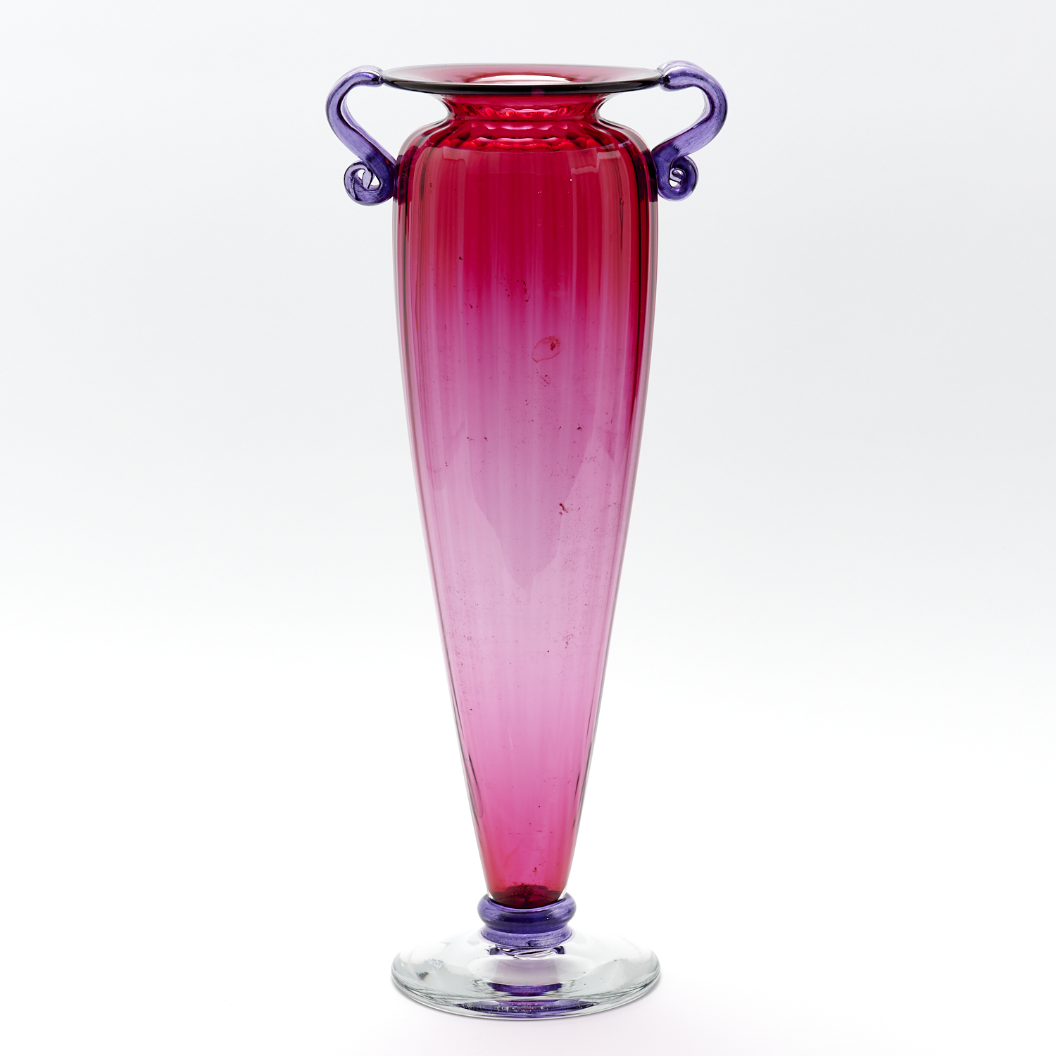 A LARGE AUSTRALIAN TAPERED ART GLASS CENTRE VASE BY SIGNED 'SALTON' (MAINLY KNOWN FOR MAJOR INSTALLATIONS) H.43CM, LEONARD JOEL DELIVERY SIZE: LARGE