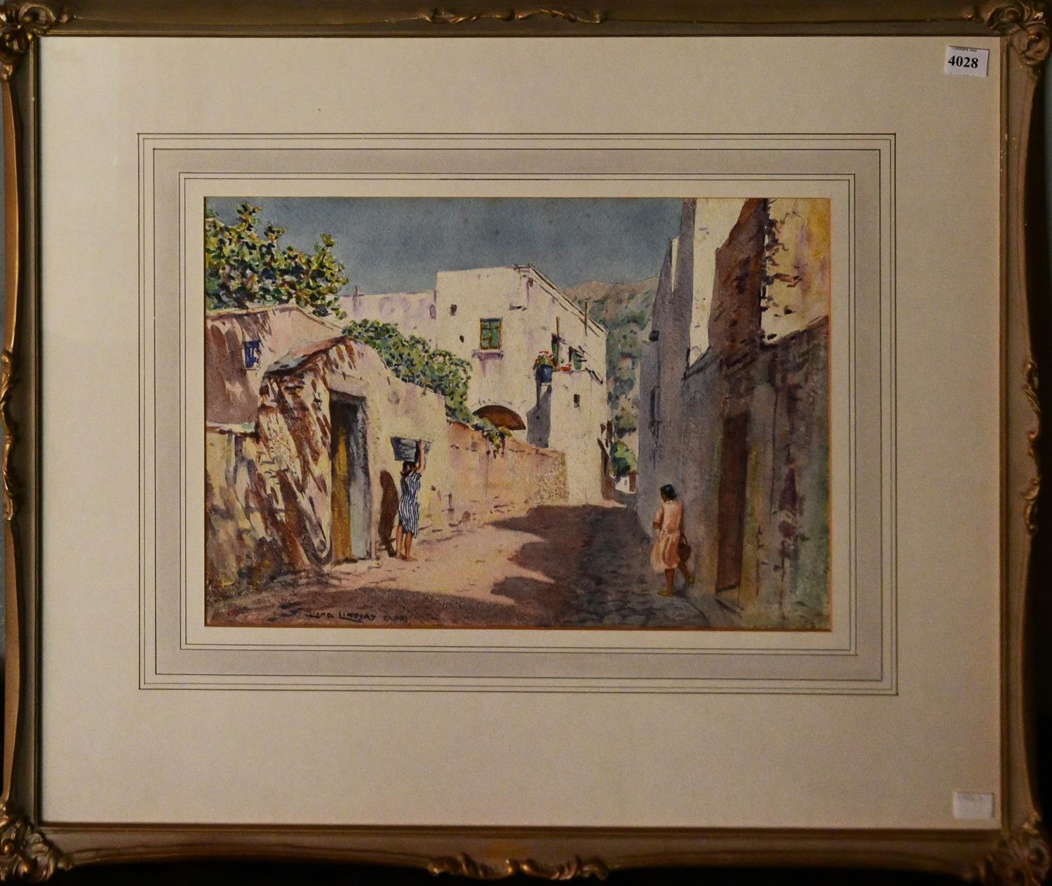 LIONEL LINDSAY, CAPRI, WATERCOLOUR ON PAPER, SIGNED AND TITLED LOWER LEFT, 27 X 38CM, FRAME SIZE: 54 X 63CM