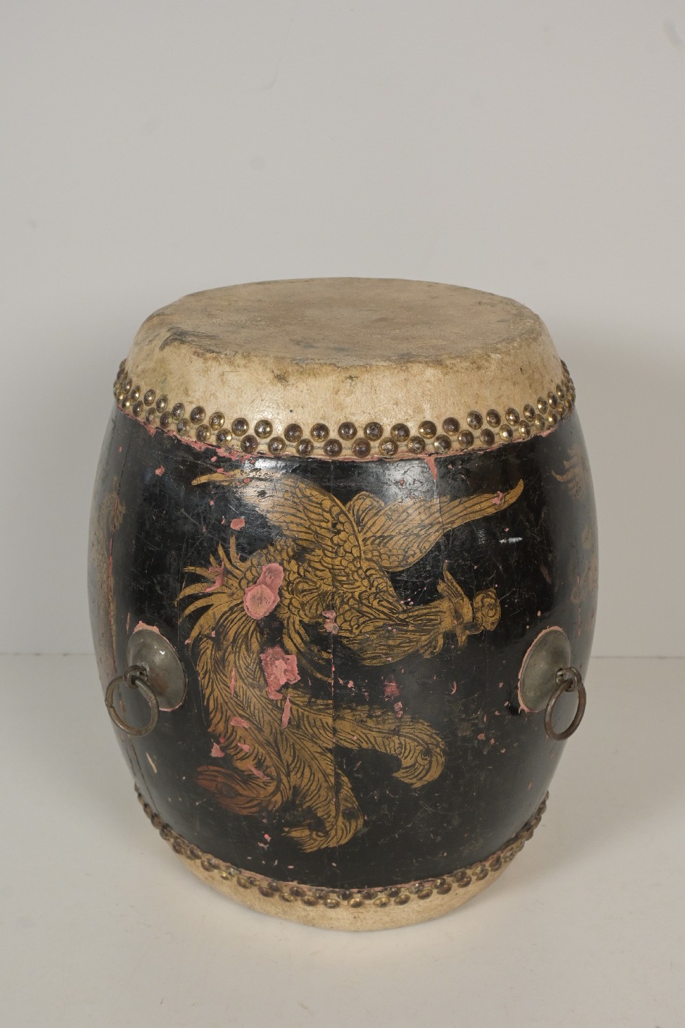 AN ASIAN HAND PAINTED WOODEN DRUM (33H X 33D CM) (LEONARD JOEL DELIVERY: MEDIUM)
