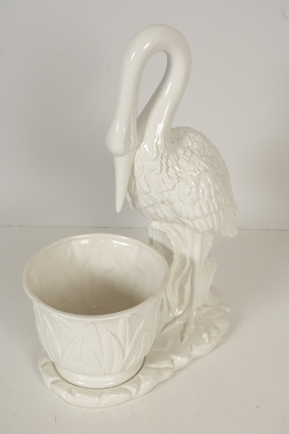 A MID-CENTURY WHITE GLAZED CERAMIC STALK FORM PLANTER POT 46H X 32W (LEONARD JOEL DELIVERY: MEDIUM)