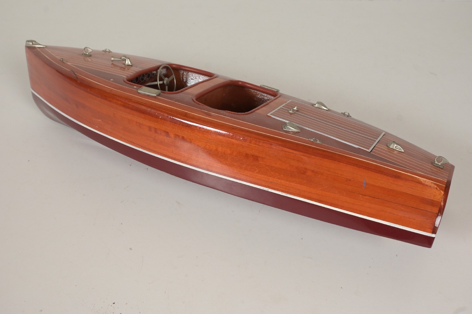 A WOODEN SPEEDBOAT WITH REMOVABLE REAR LID (64W CM) (LEONARD JOEL DELIVERY: MEDIUM)