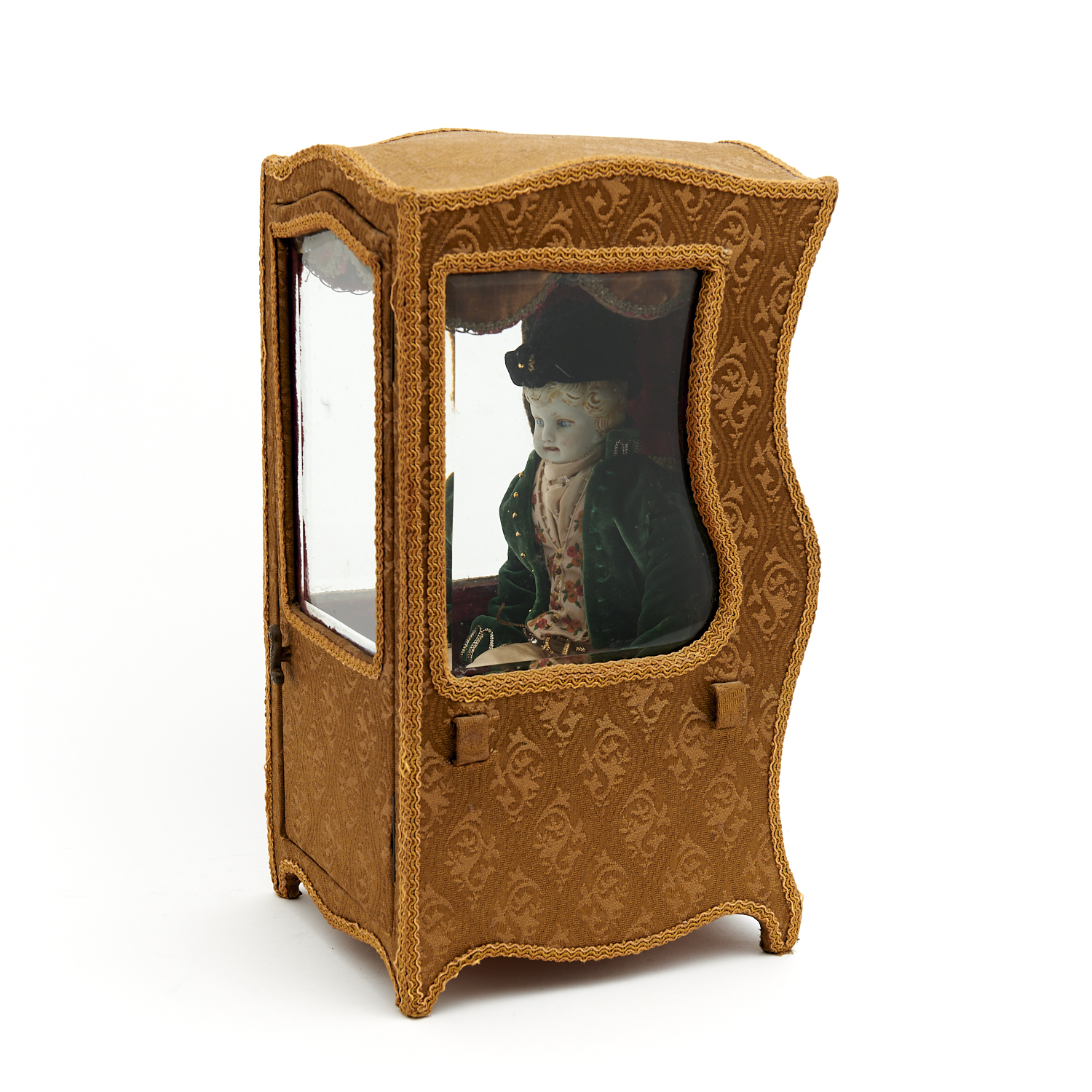 A MINIATURE FRENCH SEDAN CHAIR WITH DOLL H.38CM, LEONARD JOEL DELIVERY SIZE: MEDIUM
