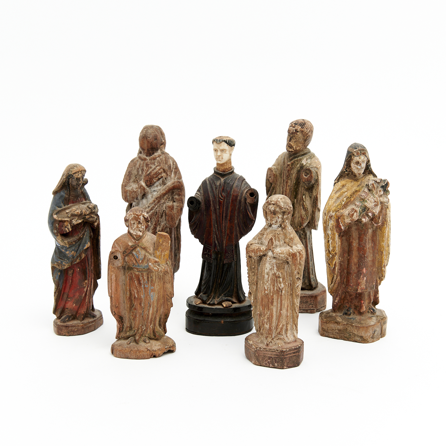 A COLLECTION OF SEVEN SMALL SANTOS FIGURES (A/F) H.16CM (TALLEST), LEONARD JOEL DELIVERY SIZE: MEDIUM