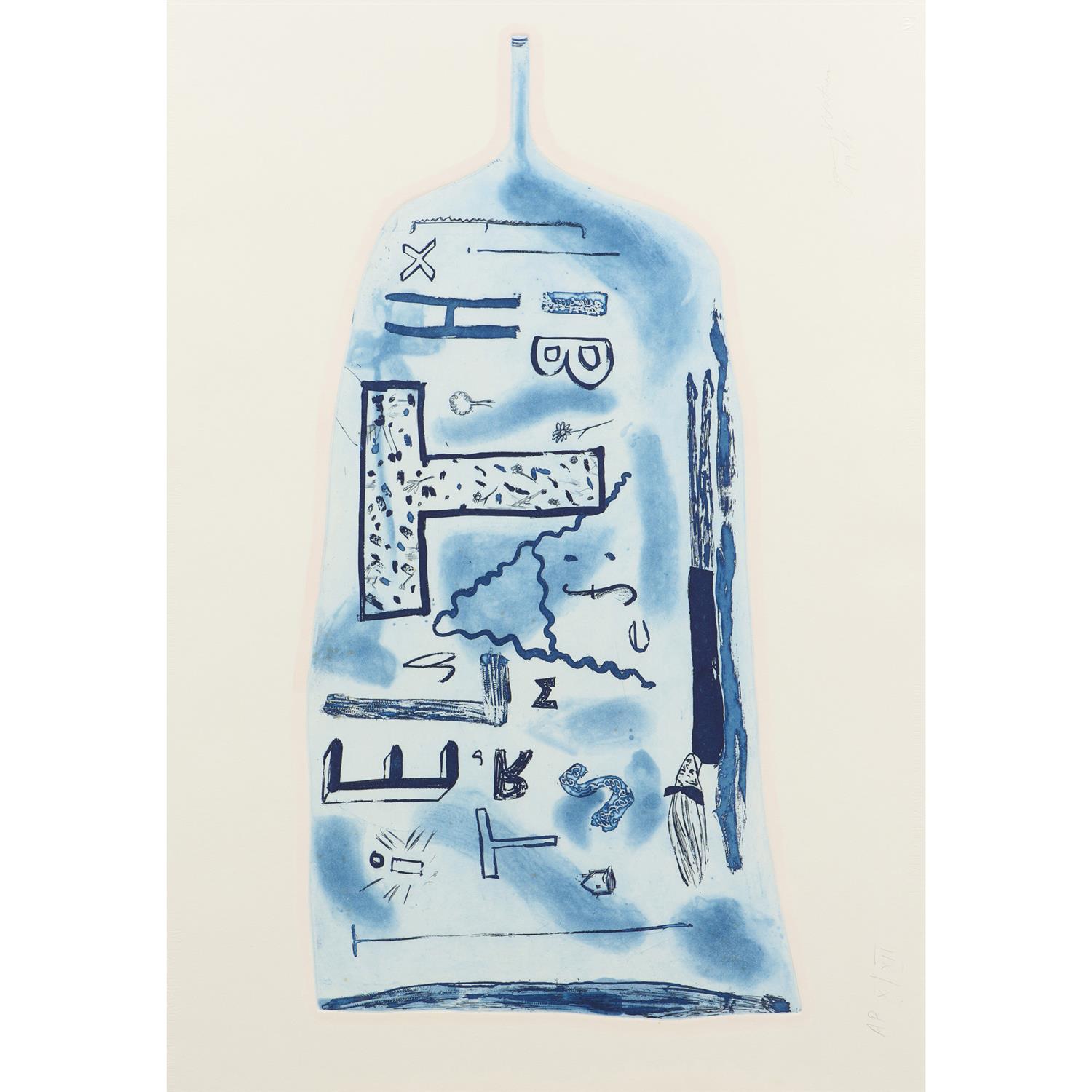 "The aquatints of Jenny Watson's series, Bottled Memories, contain a distillation of her personal history in the shape of memories that have formed, and continue to inform, who she is. Each work in the series is a bottling of words, associations and fragments that are preserved in glass like a specimen of scientific curiosity. Fractured and abstracted, letters float free from the words, memories and events they signify."