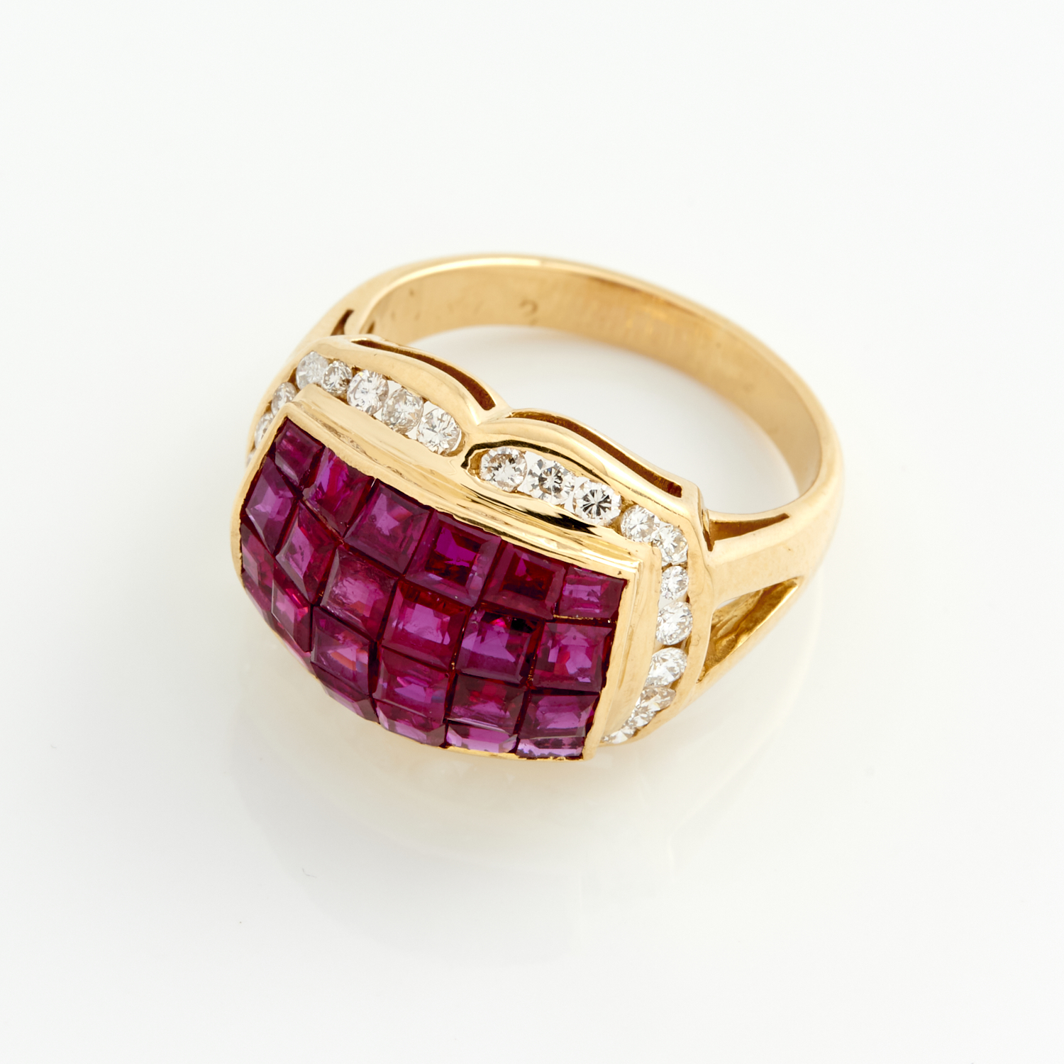 A RUBY AND DIAMOND RING IN 18CT GOLD, SIZE L, 6.4GMS