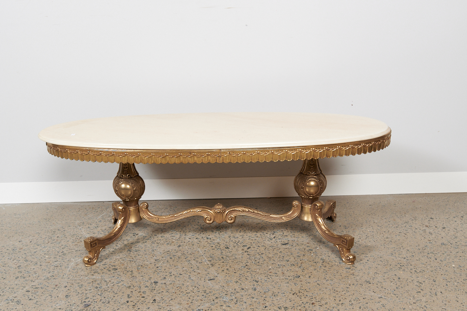 AN ORNATE MARBLE TOP COFFEE TABLE (45H X 121W X 52D CM) (LEONARD JOEL DELIVERY: X-LARGE)
