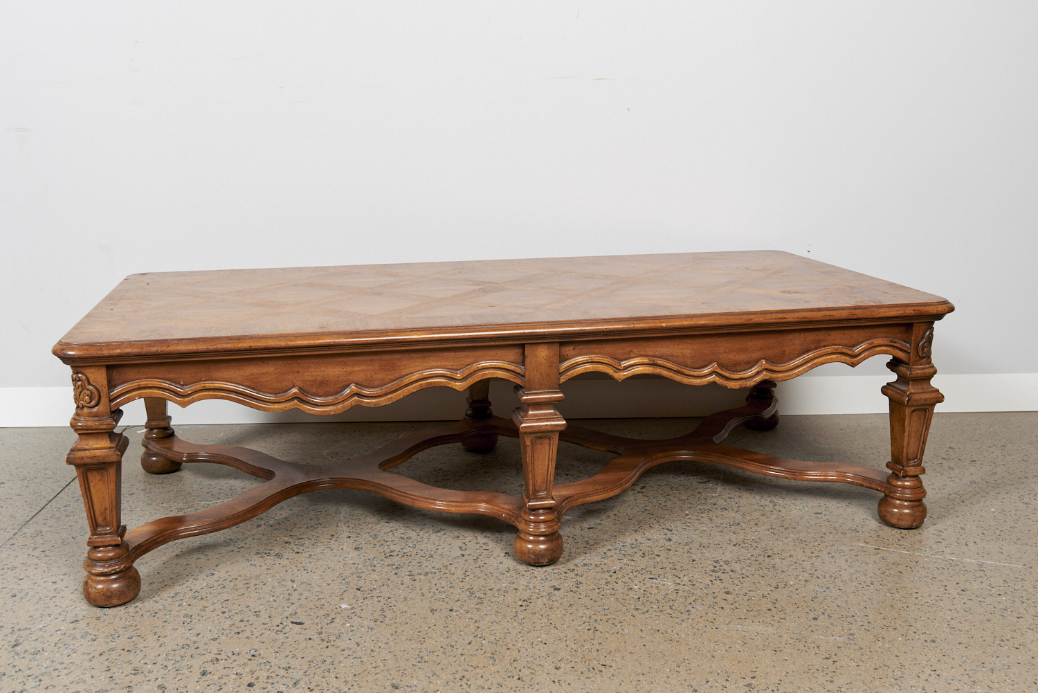 A FRENCH PROVINCIAL STYLE COFFEE TABLE (44H X 151W X 63D CM) (LEONARD JOEL DELIVERY: X-LARGE)X-LARGE)
