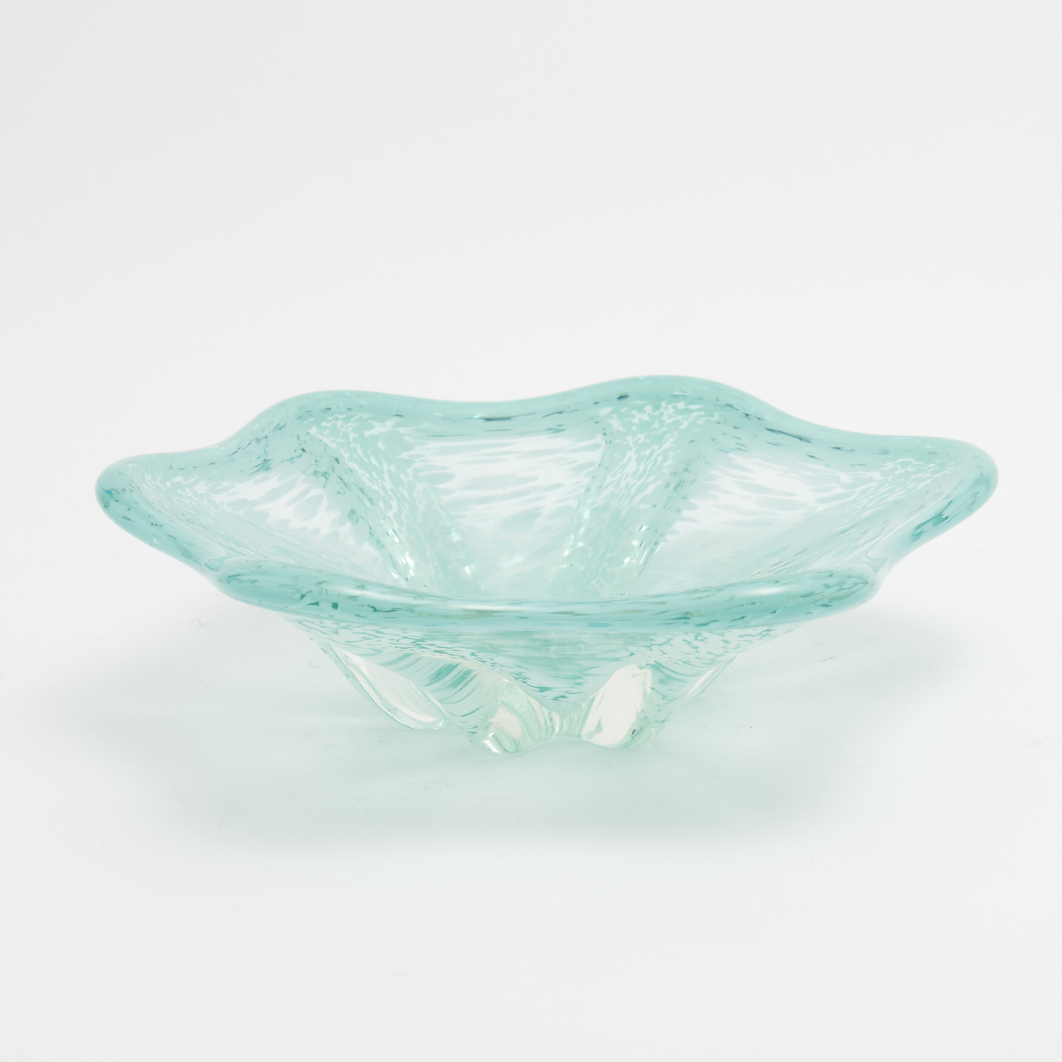 A MID-CENTURY ITALIAN BLUE GLASS ORGANIC FORM CENTRE PIECE BOWL W.32.5CM, LEONARD JOEL DELIVERY SIZE: MEDIUM
