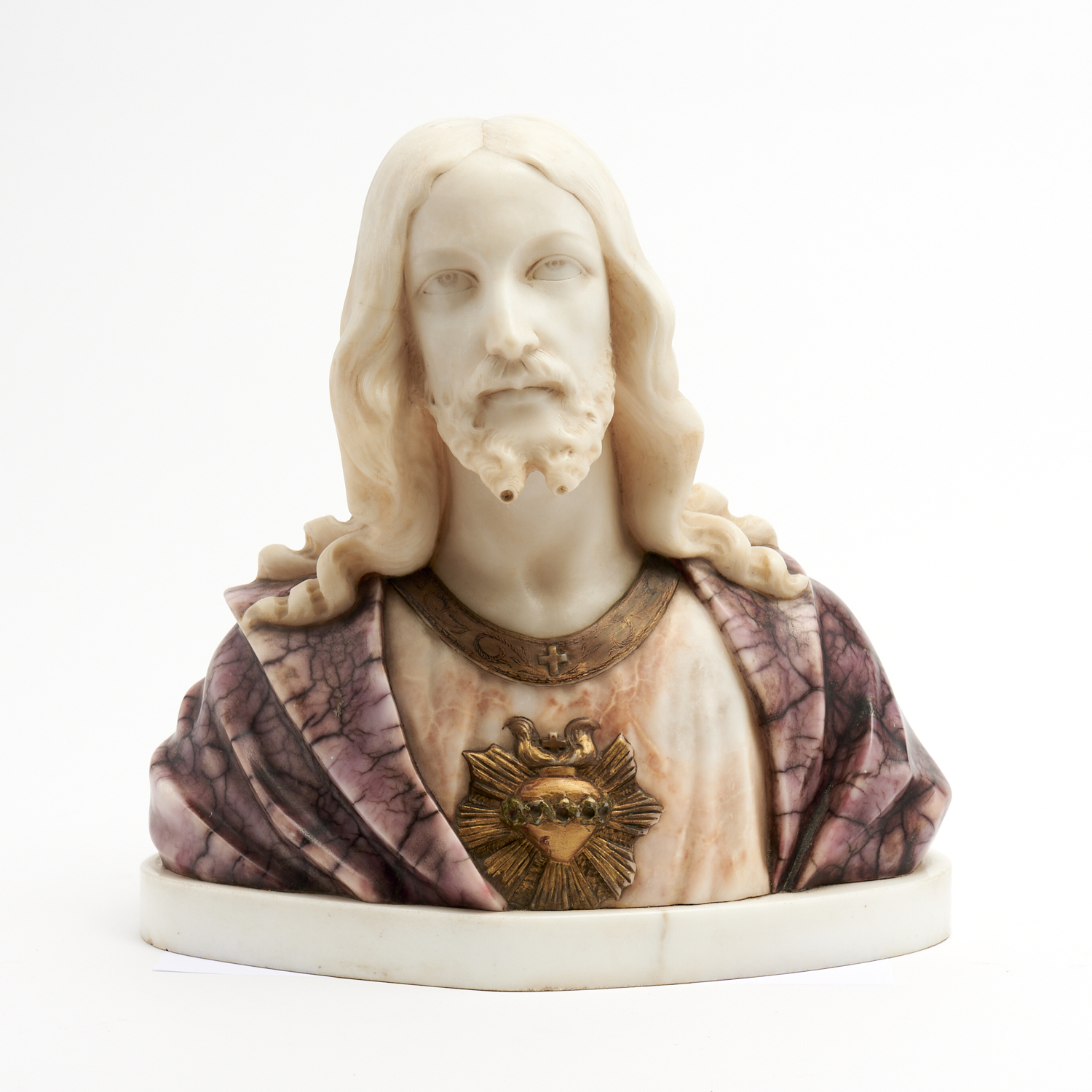 A 19TH CENTURY FRENCH GILDED AND STAINED MARBLE BUST OF JESUS BY CARLI H.36CM, LEONARD JOEL DELIVERY SIZE: LARGE