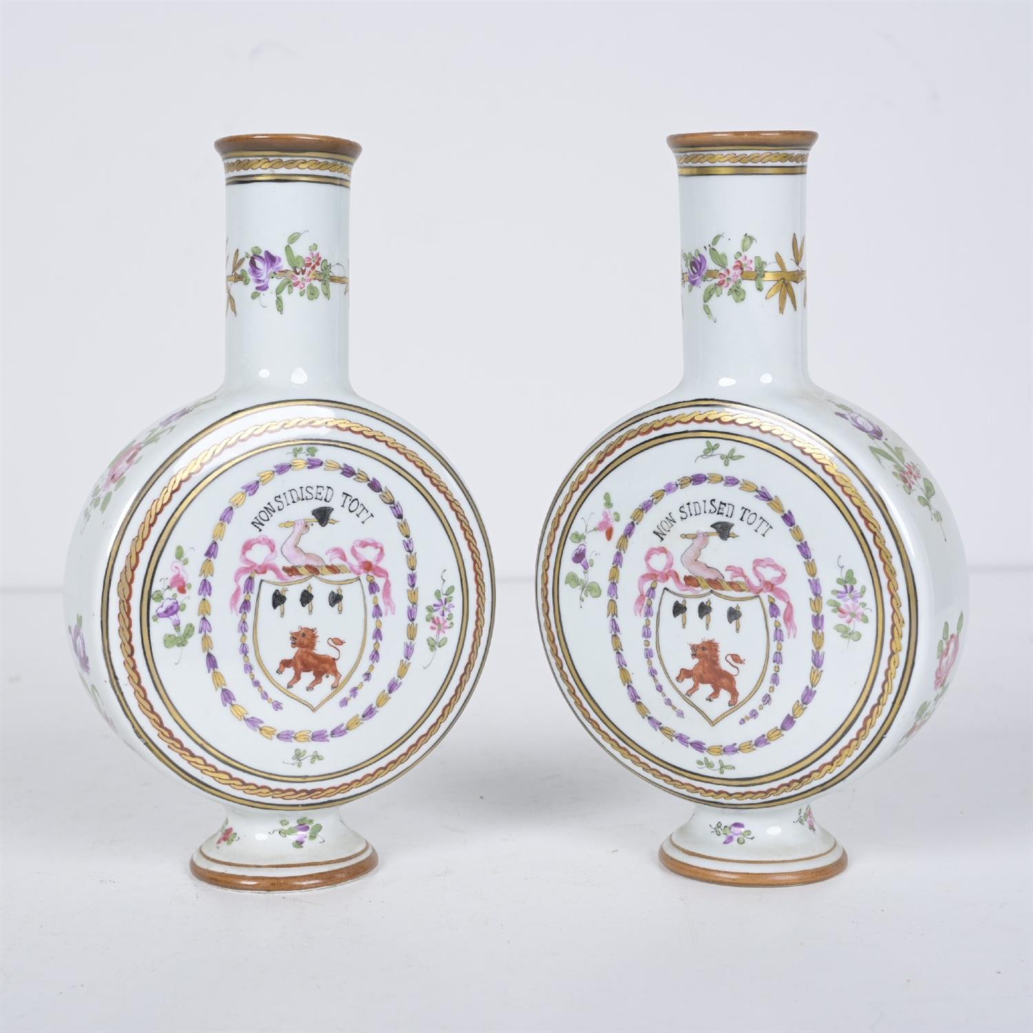 A PAIR OF CONTINENTAL PORCELAIN ARMORIAL FLASKS, IN THE SAMSON STYLE. (21H CM) (LEONARD JOEL DELIVERY: SMALL) Provenance: Private Collection, Toorak