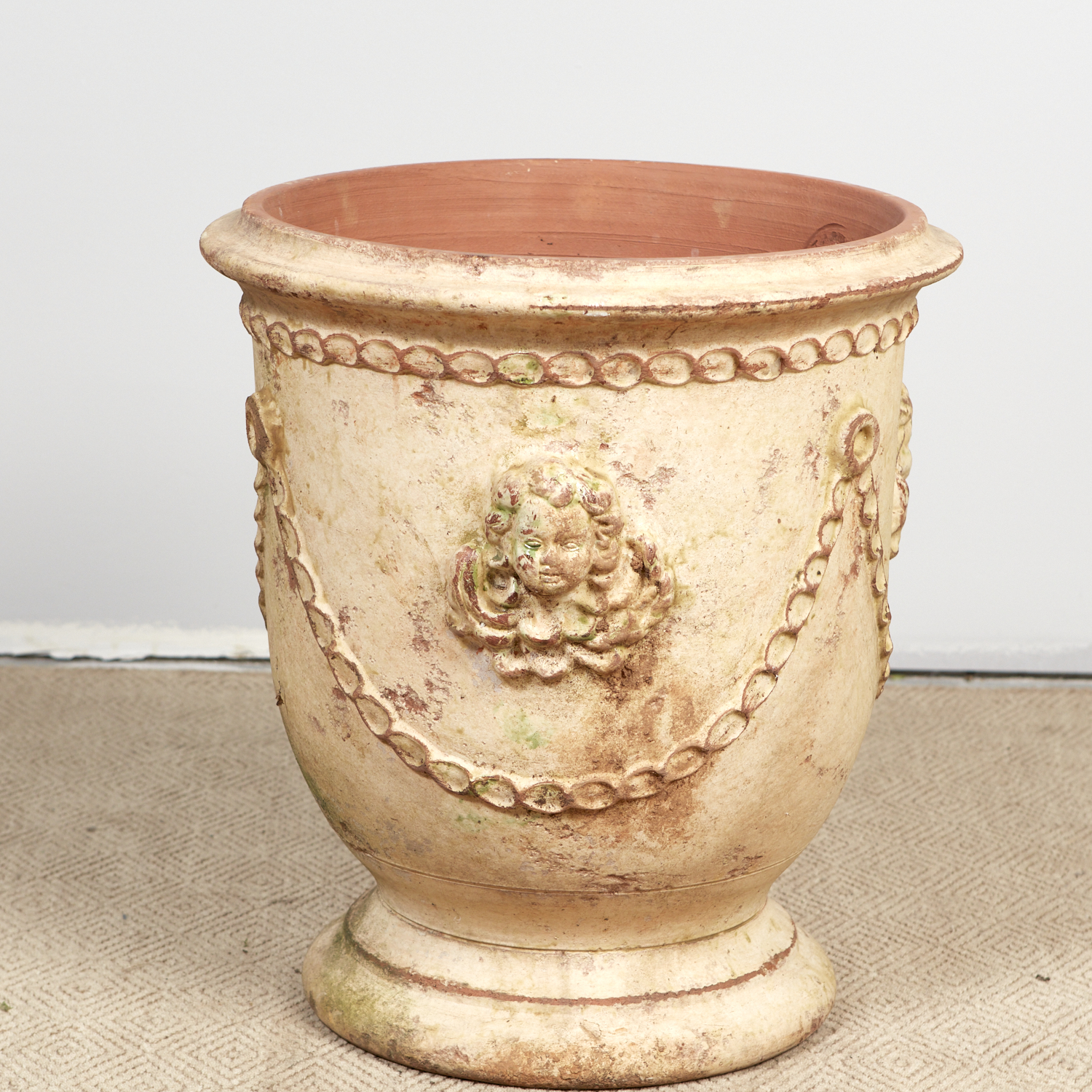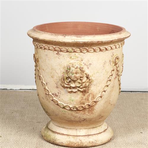 AN ANDUZE GARDEN URN IN VERSAILLES ANTICA FINISH FROM LE CHENE VERT POTIER A ANDUZE (65H X 59DIA CM) (THIS HEAVY ITEM MUST BE REMOVED BY CARRIERS AT THE CUSTOMER'S EXPENSE. LEONARD JOEL STAFF CANNOT ASSIST CARRYING THIS ITEM) (X-LARGE)