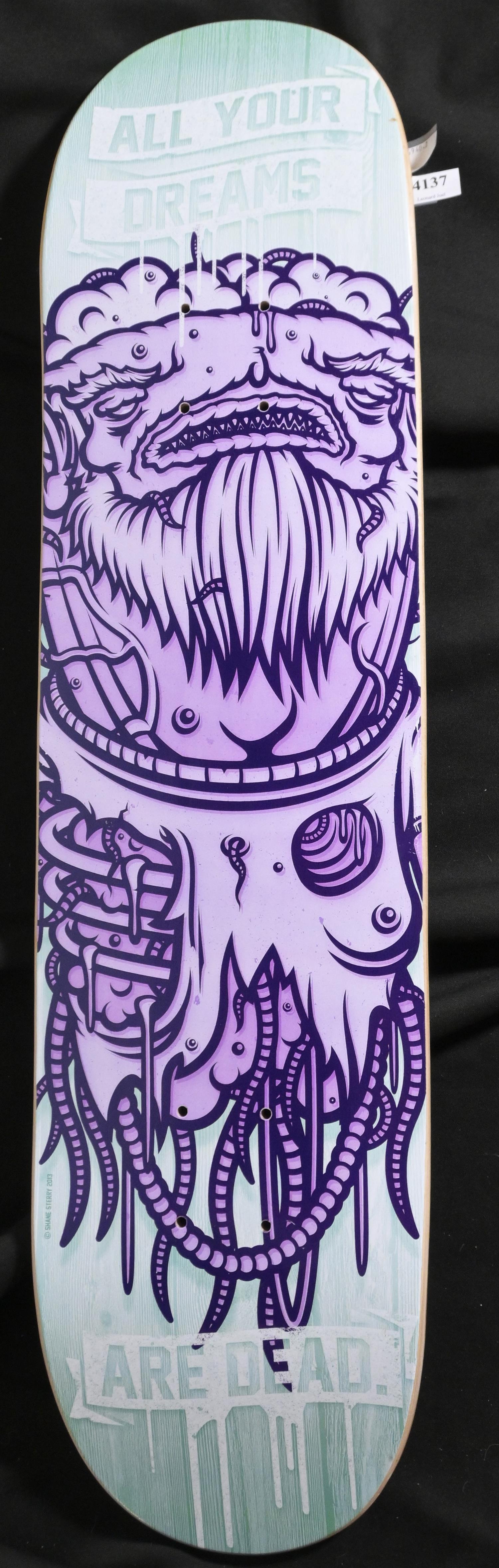§ SHANE STERRY, (ALL YOUR DREAMS ARE DEAD) 2013, DIGITAL PRINT ON SKATEBOARD, EDITION OF 10, 80 X 20CM