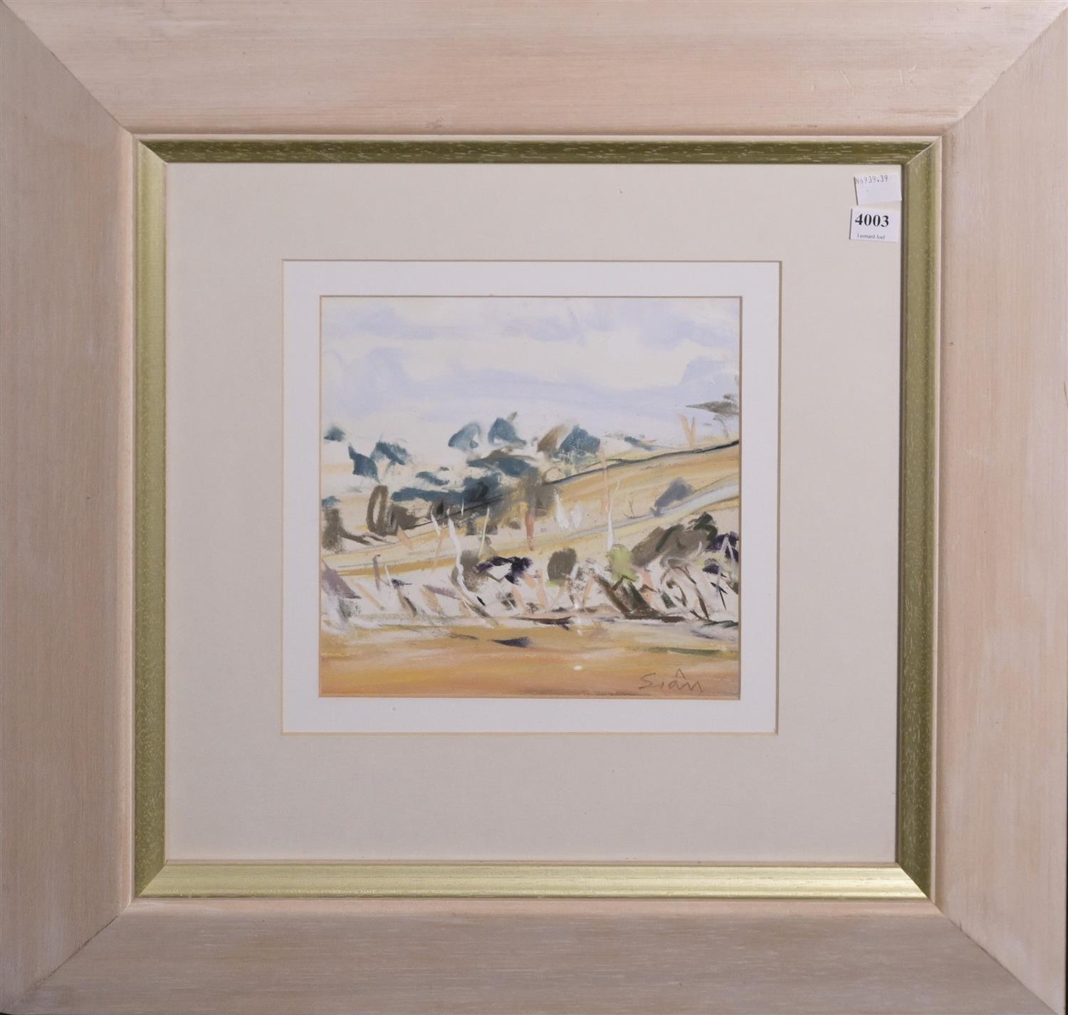 SIAN DODD, (LANDSCAPE), GOUACHE AND PASTEL ON PAPER, SIGNED LOWER RIGHT, 22 X 22CM, FRAME SIZE: 57 X 57CM