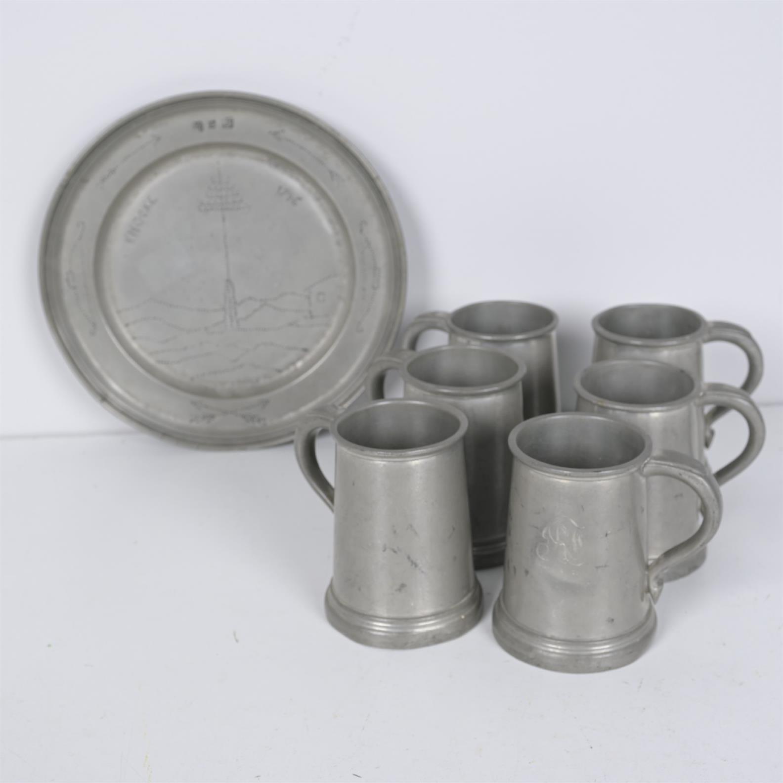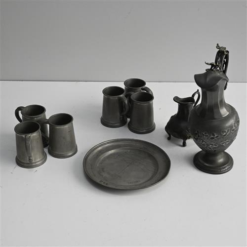 A GROUP OF ASSORTED PEWTER INCLUDING AN 18TH CENTURY PLATE. (23DIA CM) (LEONARD JOEL DELIVERY: MEDIUM) Provenance: Private Collection, Toorak