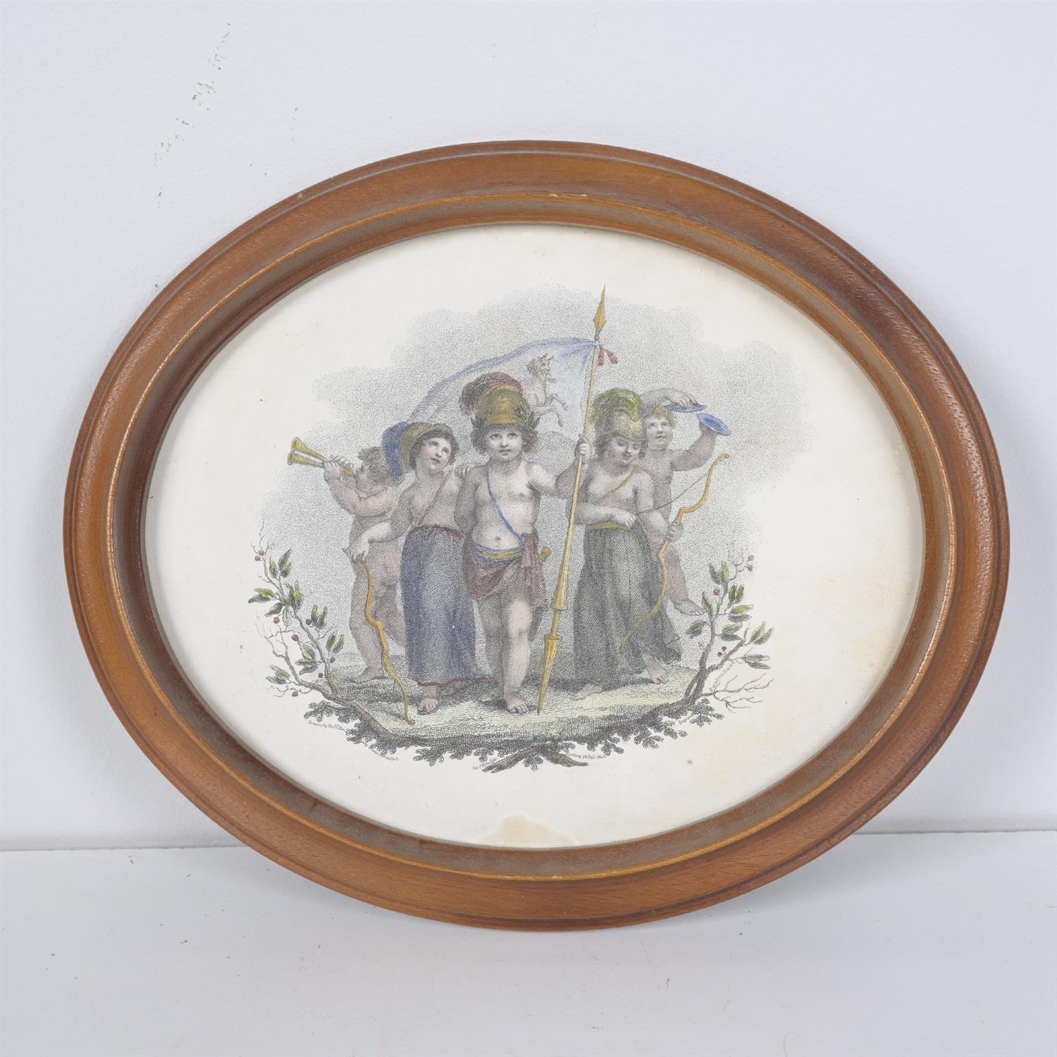 AN OVAL FRAMED COLOURED ENGRAVING, LATE 18TH CENTURY. (24H X 30W CM) (LEONARD JOEL DELIVERY: SMALL). Provenance: Private Collection, Toorak