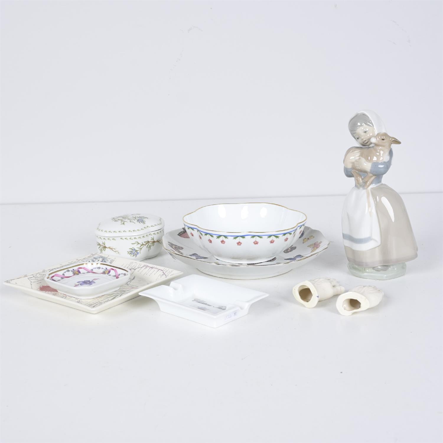 A GROUP OF ASSORTED CERAMIC / PORCELAIN ITEMS INCLUDING NAO FIGURE. (21H CM) (LEONARD JOEL DELIVERY: SMALL). Provenance: Private Collection, Toorak