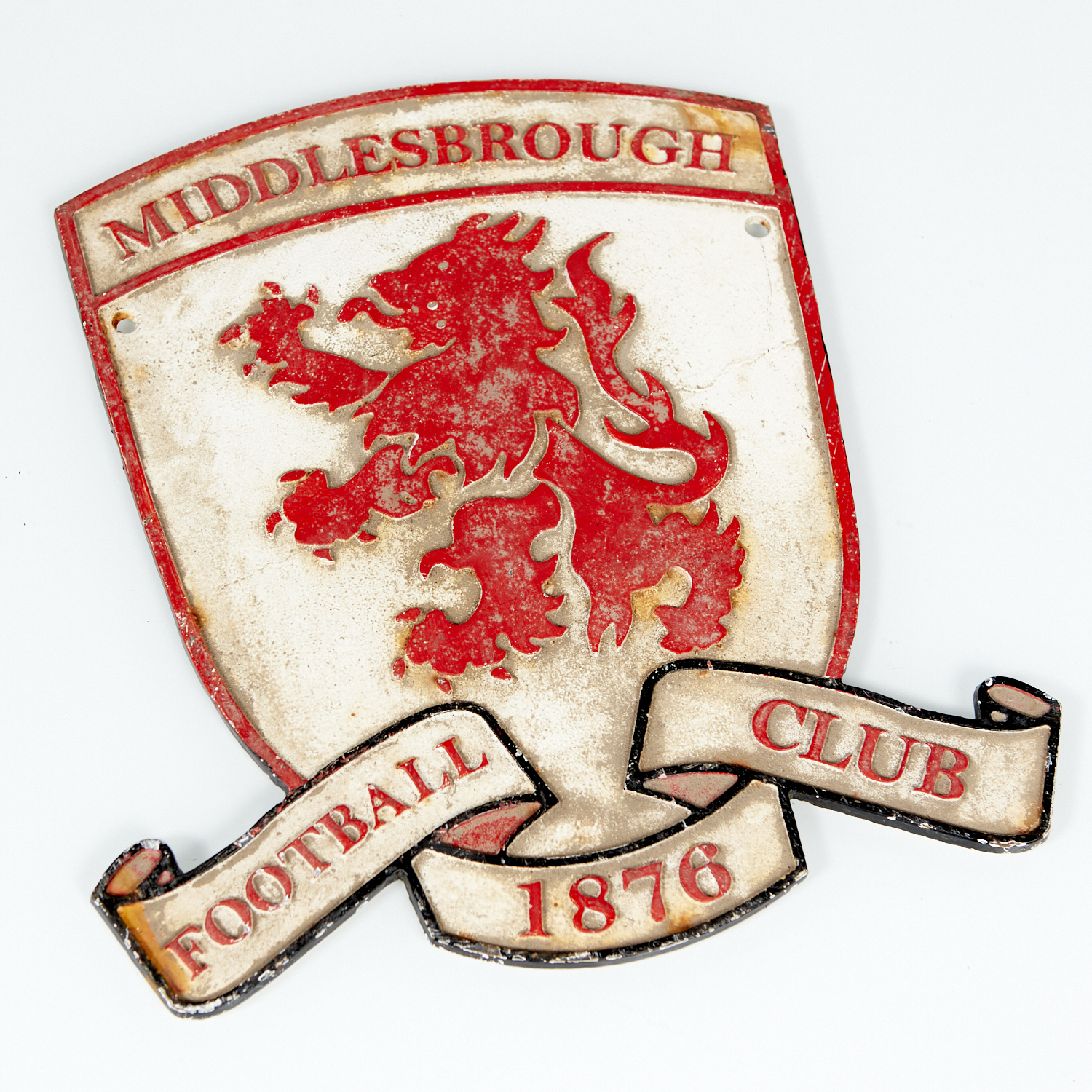 A CAST IRON MIDDLESBROUGH FOOTBALL CLUB PLAQUE (31H X 30W CM) (LEONARD JOEL DELIVERY: MEDIUM)