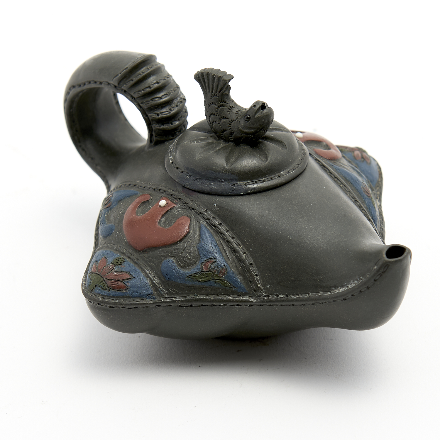 A YIXING POTTERY TEAPOT MARKED TO LID AND BASE L.19CM, LEONARD JOEL DELIVERY SIZE: SMALL