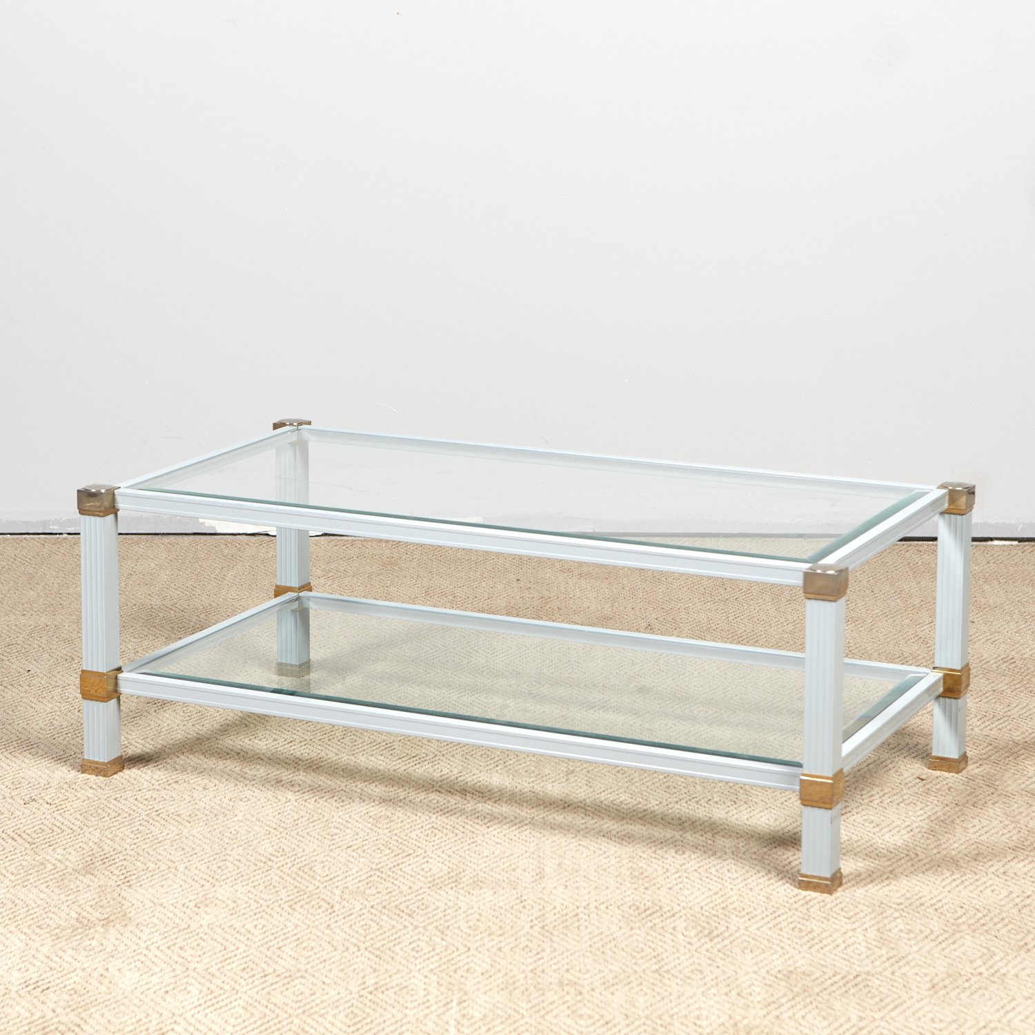 A PIERRE VANDEL STYLE TWO TIER METAL & GLASS RECTANGULAR COFFEE TABLE (A/F) (40H X 110W X 57D CM) (LEONARD JOEL DELIVERY: X-LARGE)