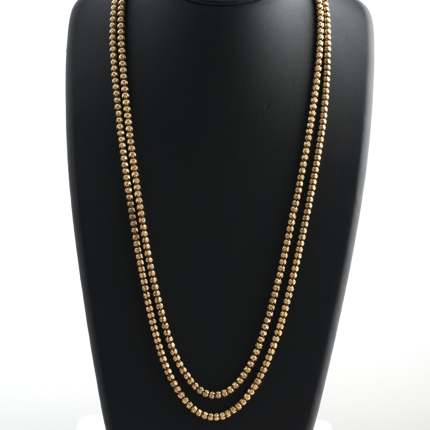 AN ANTIQUE FANCY LINK GUARD CHAIN IN GOLD PLATED METAL, LENGTH 1400MM