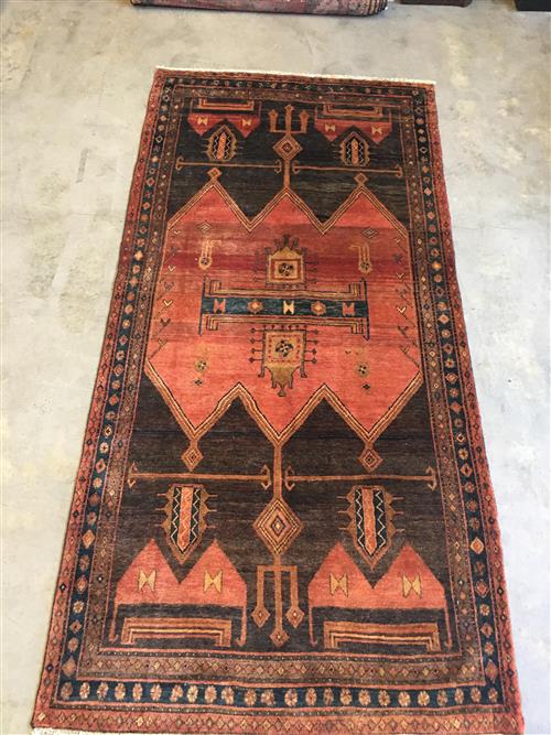 A SOLID PERSIAN TRIBAL TAJABAD RUG. 100% WOOL, NATURAL DYES HAND-KNOTTED VILLAGE WEAVE WITH A DESIGN OF CENTRAL ANCHORED MEDALLION AND CORNER AMULET MEDALLIONS. WITH A BORDER OF ROSETTES. SIZE: 299 X 147 CM-ORIGIN: PERSIA – RRP: $1,700 CONDITION: MINOR SEMI VINTAGE PILE DOCUMENTATION OF AUTHENTICITY INCLUDED.