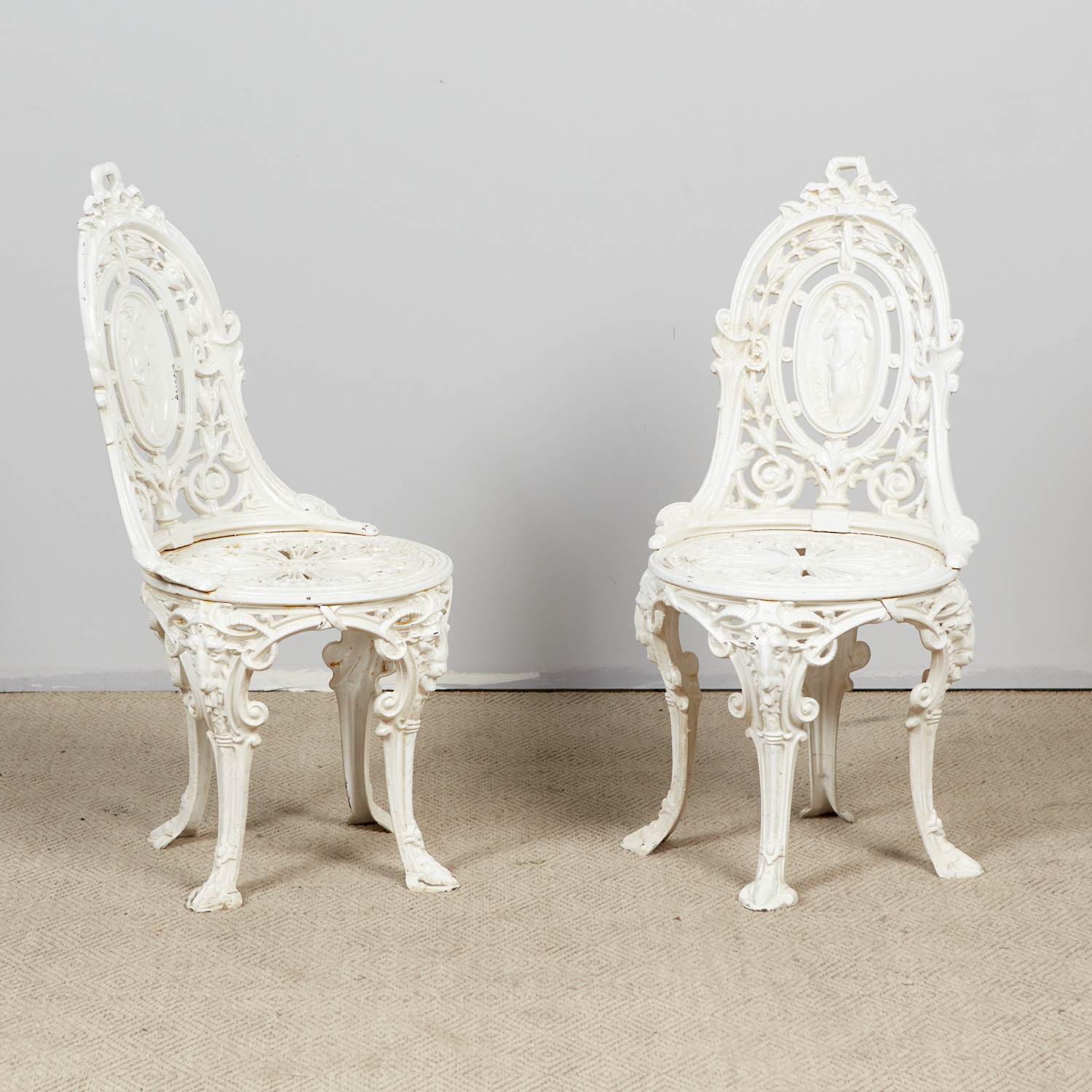 A PAIR OF COLEBROOKDALE CAST IRON 'FOUR SEASONS' CHAIRS (A/F) (92H X 51W X 49D CM) (THIS HEAVY ITEM MUST BE REMOVED BY CARRIERS AT THE CUSTOMER'S EXPENSE. LEONARD JOEL STAFF CANNOT ASSIST CARRYING THIS ITEM) (X-LARGE)