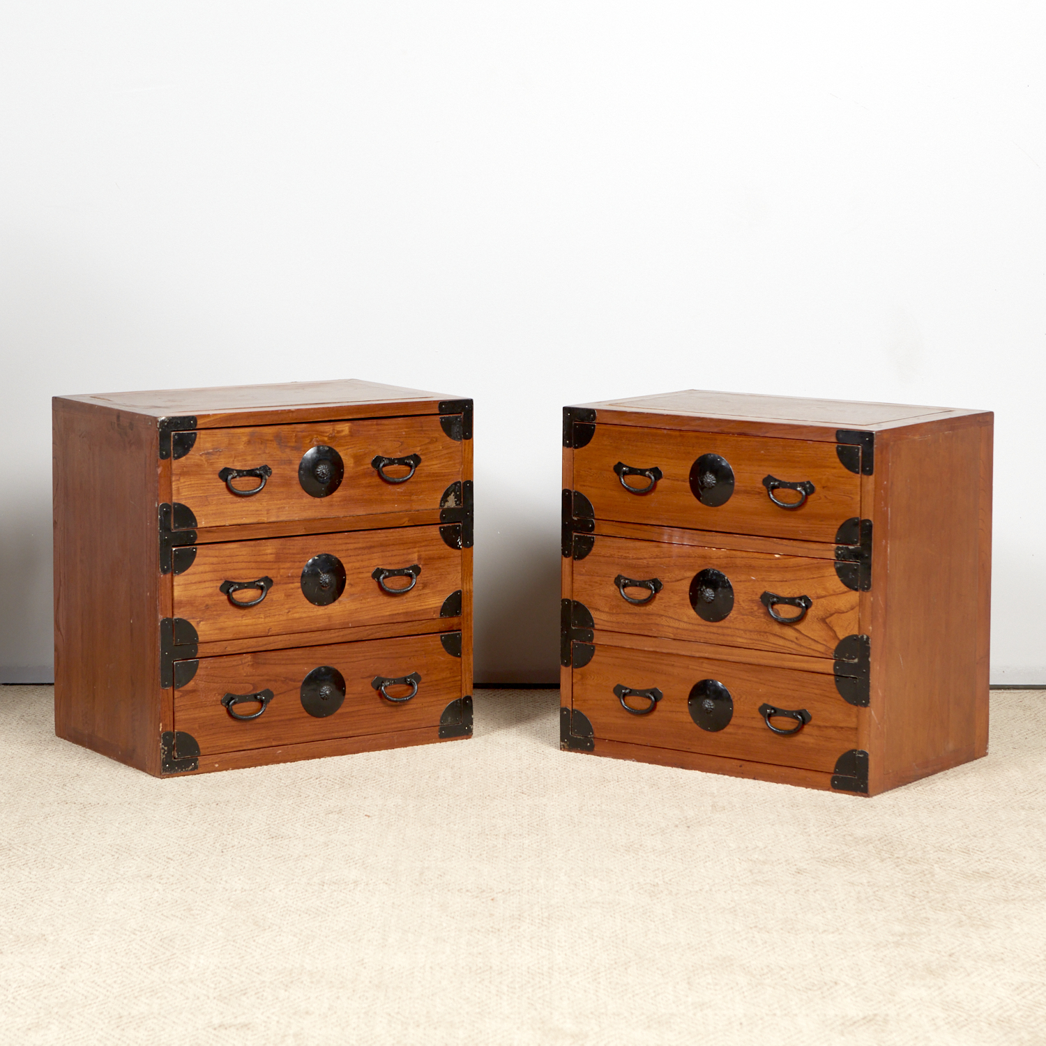 A PAIR OF JAPANESE THREE DRAWER CABINETS (A/F) (60H X 61W X 42D CM) (LEONARD JOEL DELIVERY: X-LARGE)