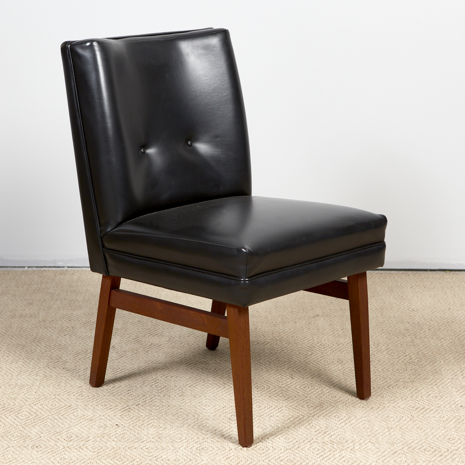 A MODERNIST VINYL UPHOLSTERED LOUNGE CHAIR (89H X 51W X 66D CM) (LEONARD JOEL DELIVERY: LARGE)