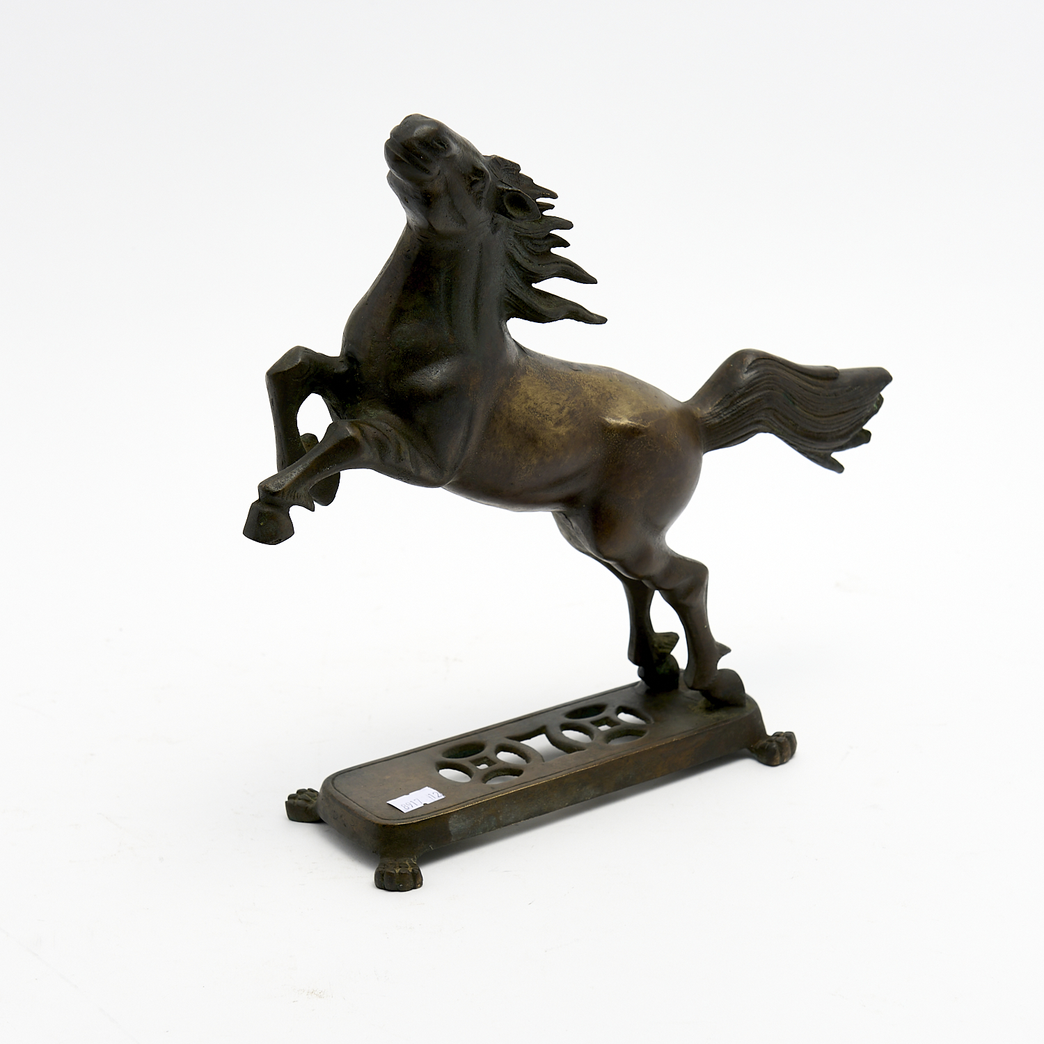 AN EARLY 20TH CENTURY CHINESE REARING BRONZE HORSE FIGURE H.31.5CM, LEONARD JOEL DELIVERY SIZE: MEDIUM