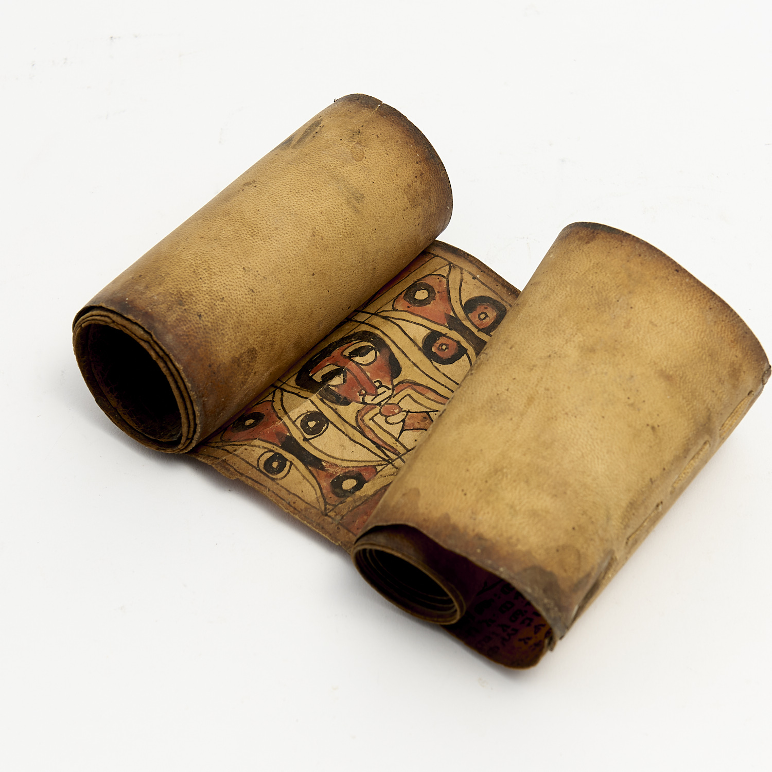 A COPTIC LEATHER SCROLL H.12CM, LEONARD JOEL DELIVERY SIZE: SMALL