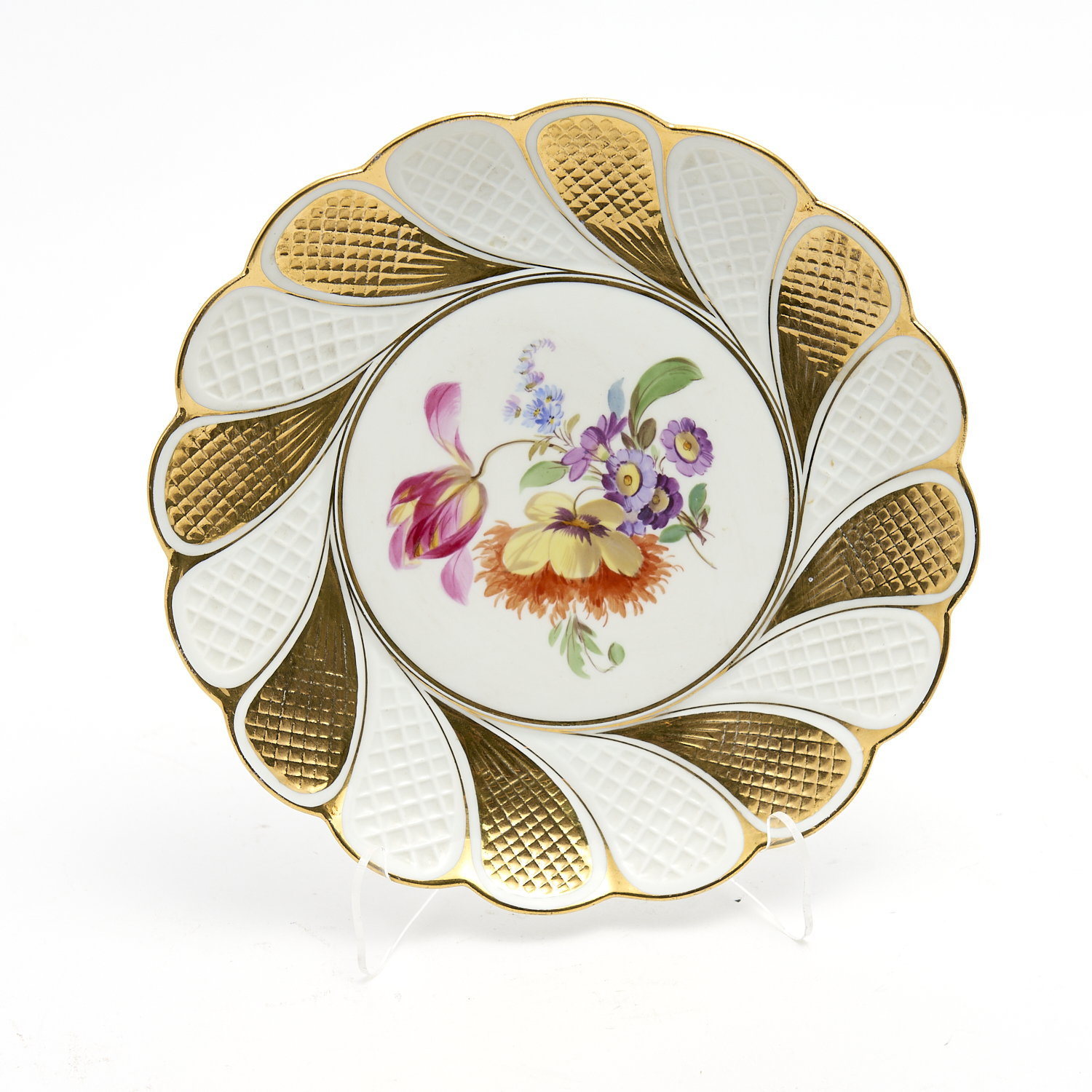 A TELLER MEISEEN PLATE WITH GILDED AND FLORAL PAINTED DECORATION DIA.23.5CM, LEONARD JOEL DELIVERY SIZE: SMALL