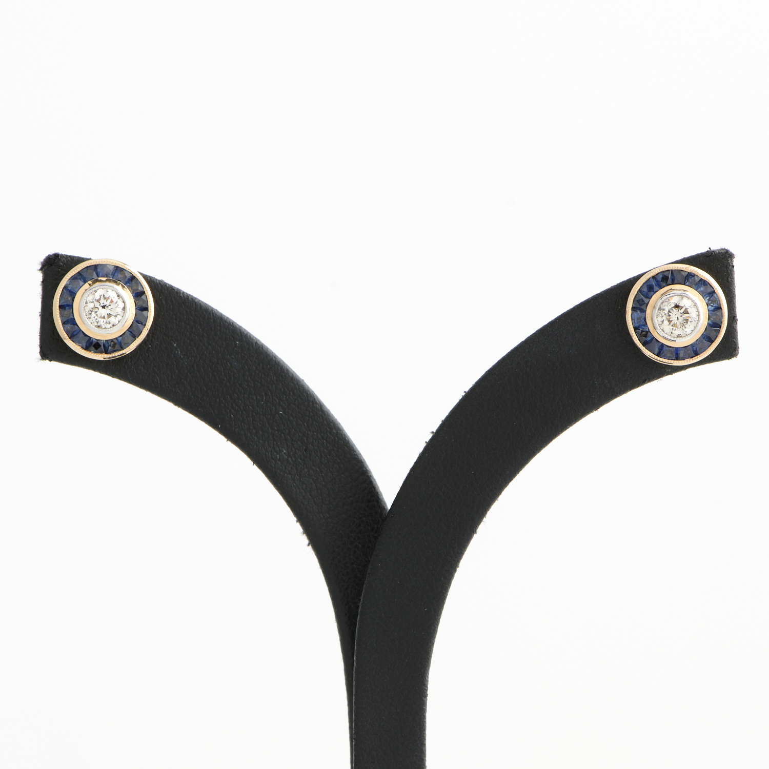 A PAIR OF SAPPHIRE AND DIAMOND EARRINGS IN 14CT GOLD, THE SAPPHIRES TOTALLING 1.11CTS, WITH DIAMONDS TOTALLING 0.66CTS, TO POST AND BUTTERFLY FITTINGS