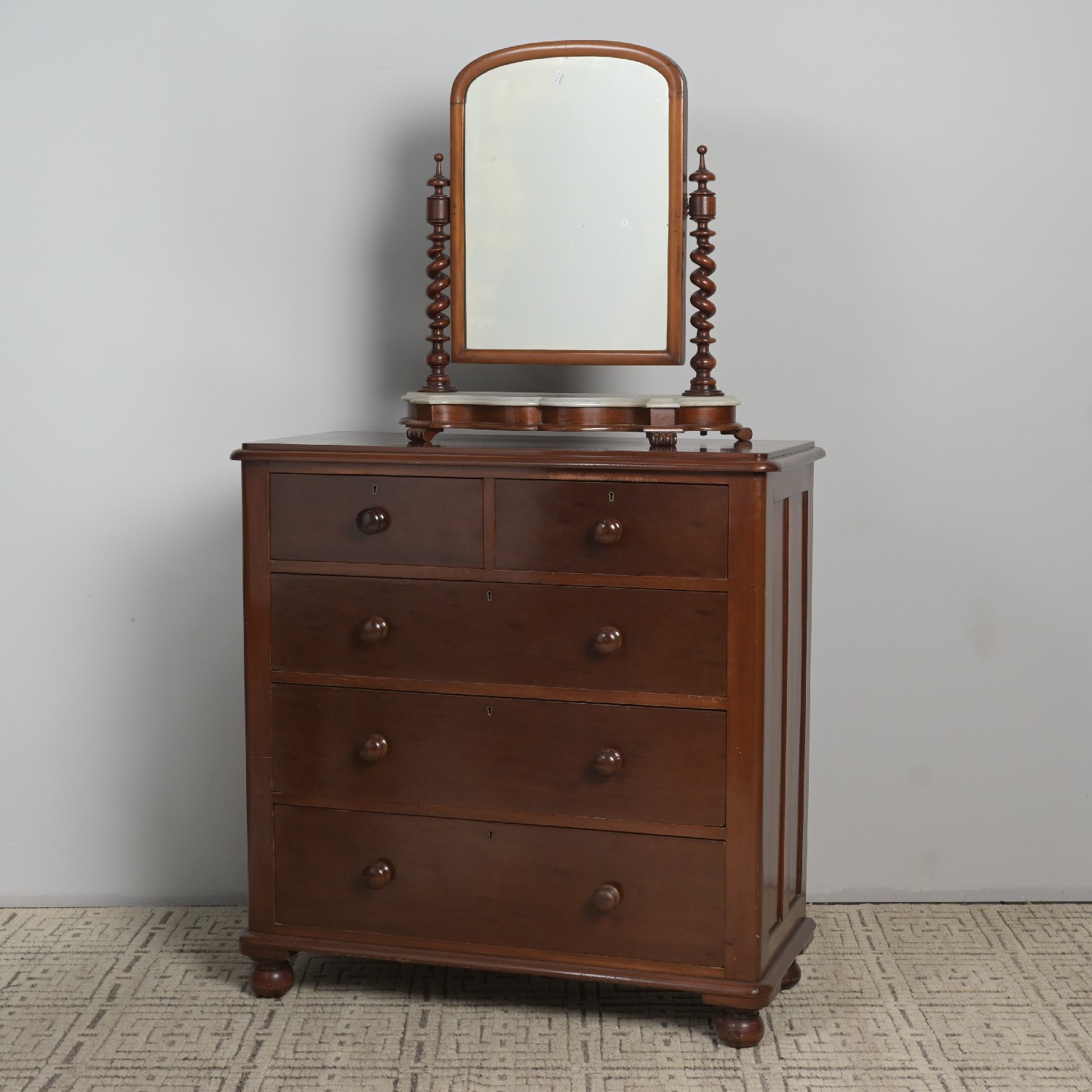 VICTORIAN CHEST TOGETHER WITH DRESSING TABLE MIRROR (A/F) (CHEST 112H X 110W X 51D CM) (THIS HEAVY ITEM MUST BE REMOVED BY CARRIERS AT THE CUSTOMER'S EXPENSE. LEONARD JOEL STAFF CANNOT ASSIST CARRYING THIS ITEM)