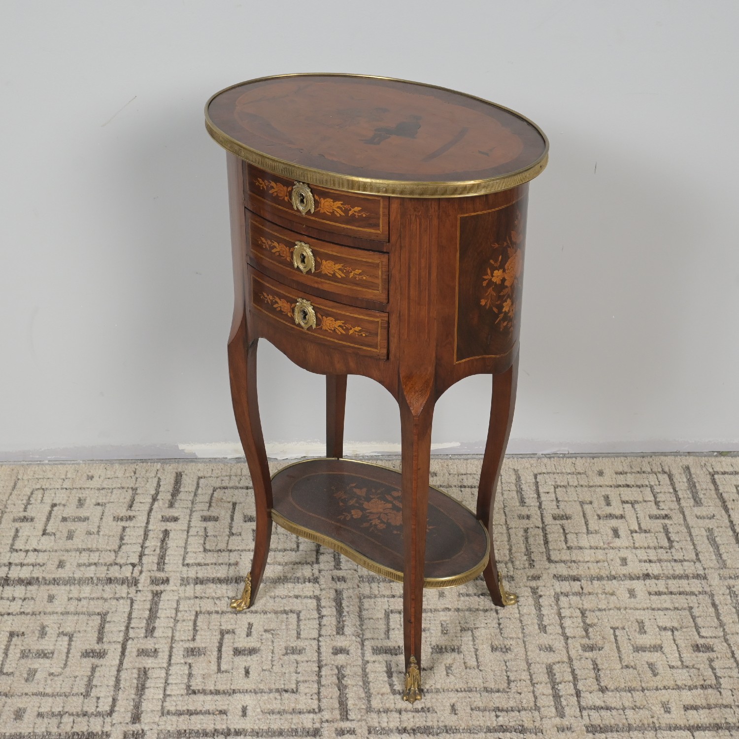 A LOUIS XV STYLE MARQUETRY SIDE TABLE - LOCKED (A/F) (81H X 49W X 35D CM) (LEONARD JOEL DELIVERY: LARGE)