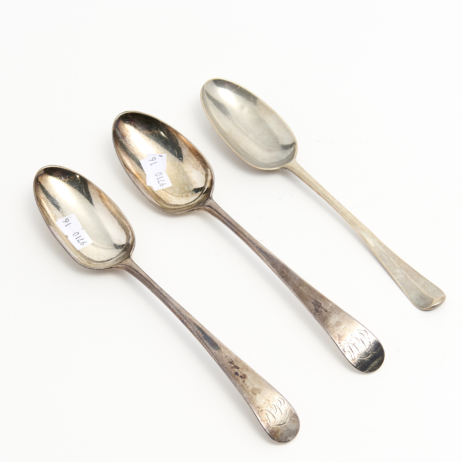 THREE STERLING SILVER SPOONS, ONE RAT TAIL BY HESTER BATEMAN W.210G L.22CM (LONGEST), LEONARD JOEL DELIVERY SIZE: SMALL